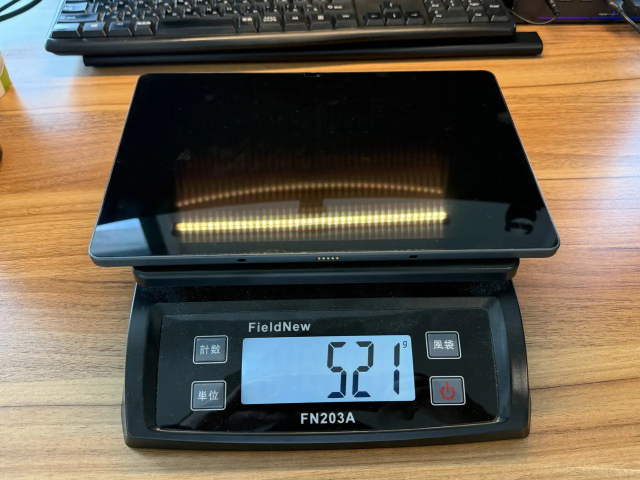 本体重量は実測で約521g。サイズは256.5×168×8.2mmで携行性に優れています。