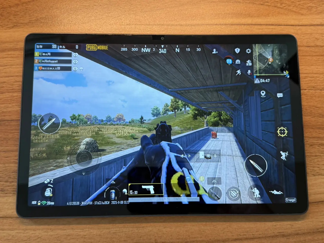 11インチの大きめのディスプレイで描画される映像には迫力があり、遠方まで索敵しやすいです。仮想コントローラーのボタン配置にも余裕があり、操作時のミスタッチを防止できます。