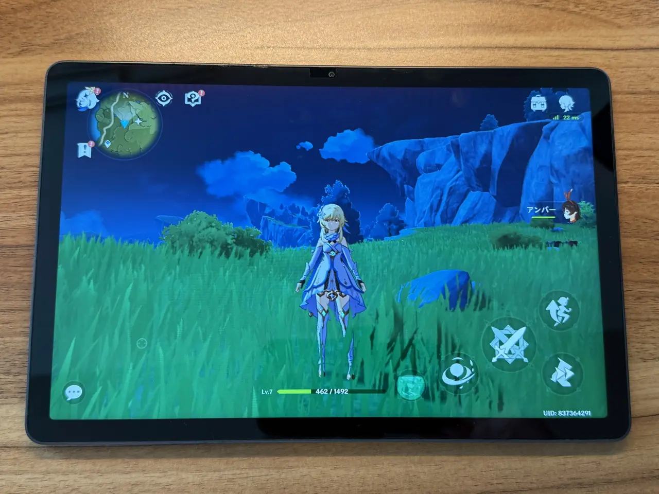 非常に重いゲームアプリとして有名な『原神』ですが、本機では画質設定さえ調整すれば比較的スムーズにプレイできました。