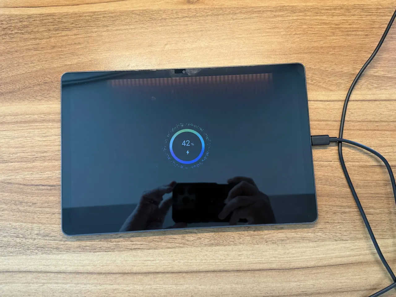実際に基本的なタブレット用途(ウェブサイト閲覧や動画視聴)で使ったところ、約10時間ほどの連続使用が可能でした。
