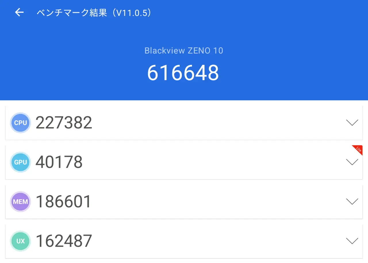 『Blackview ZENO 10』のAnTuTuベンチマークテスト結果