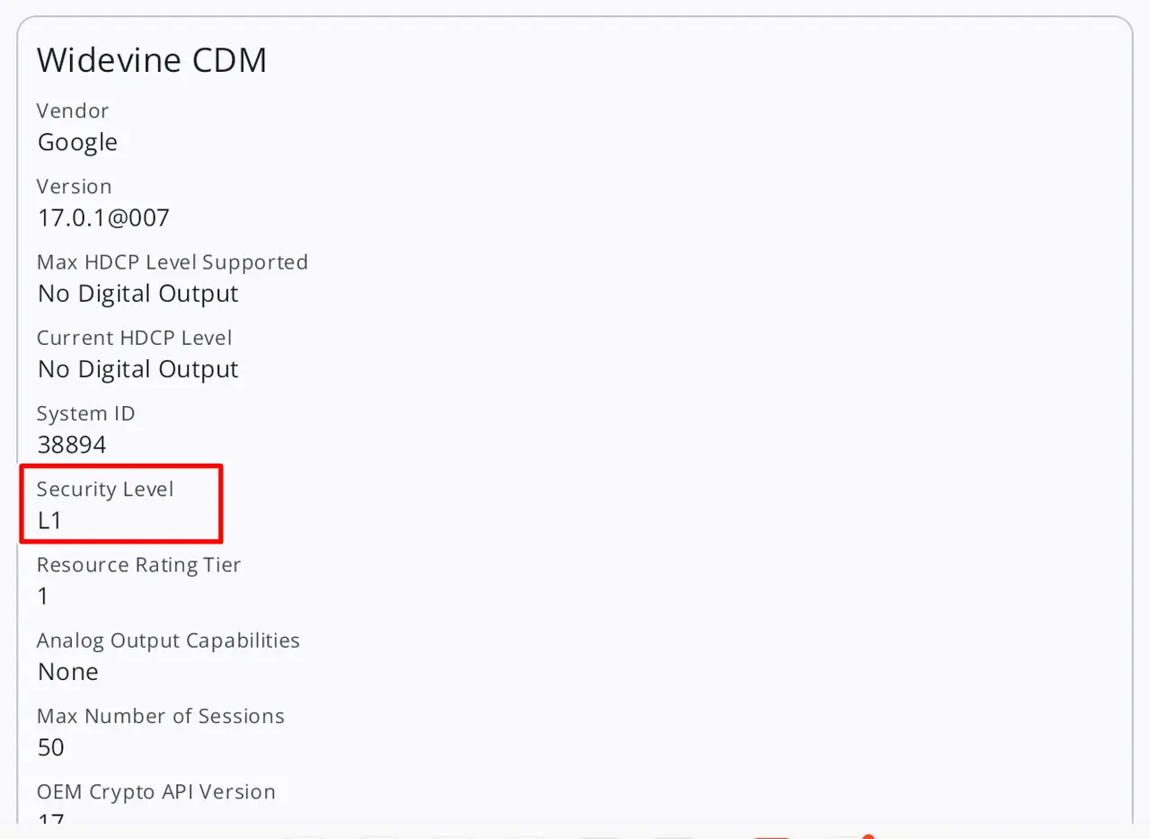 WidevineはL1のため、Netflixなどの著作権保護コンテンツを高画質設定で楽しめます。