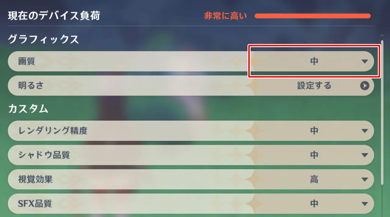 高画質に上げると描画負荷でfpsが20以下まで落ちるため、単純な移動でも動きが重く感じます。快適さ優先なら中画質固定がベストです。