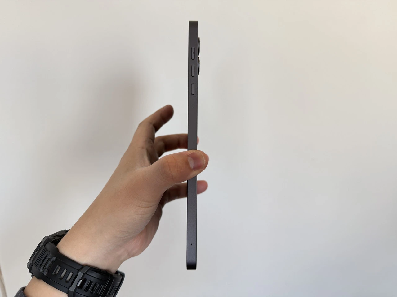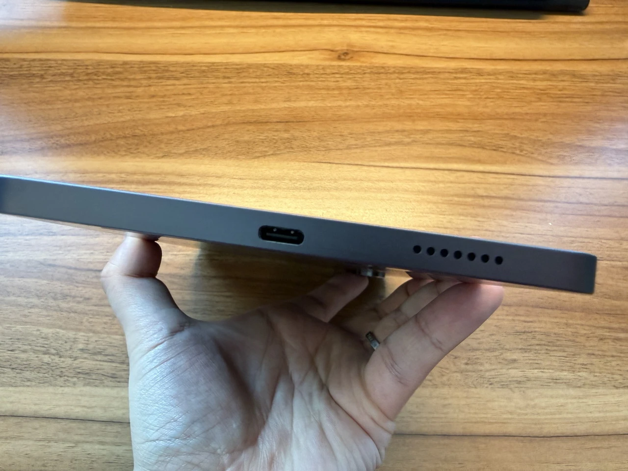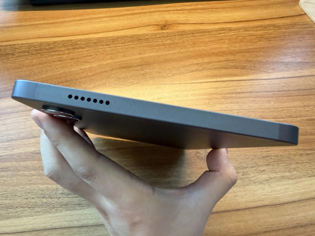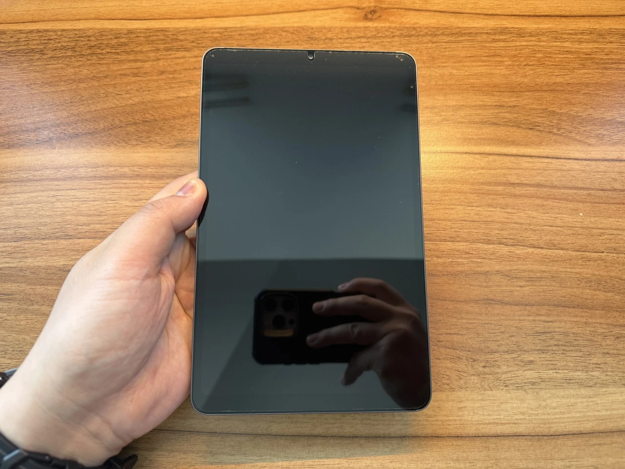 ベゼル幅(非表示領域)は実測で、左右が約6.5mm、上下が約11mm。8.4インチクラスとしては標準〜やや細めであり、横持ち時の没入感と持ちやすさのバランスが取れた設計です。