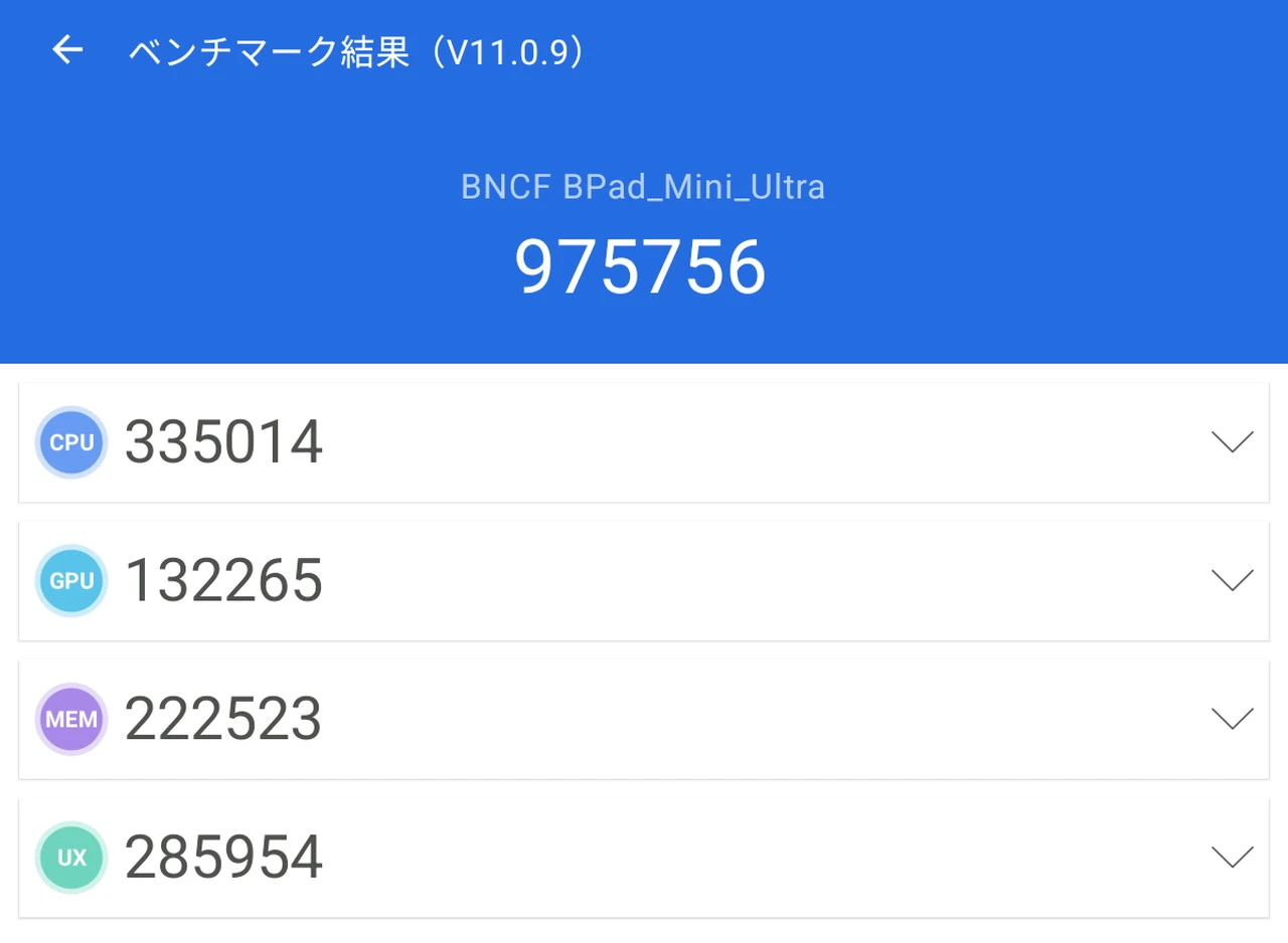 『BNCF BPad Mini Ultra』のAnTuTuベンチマークテスト結果