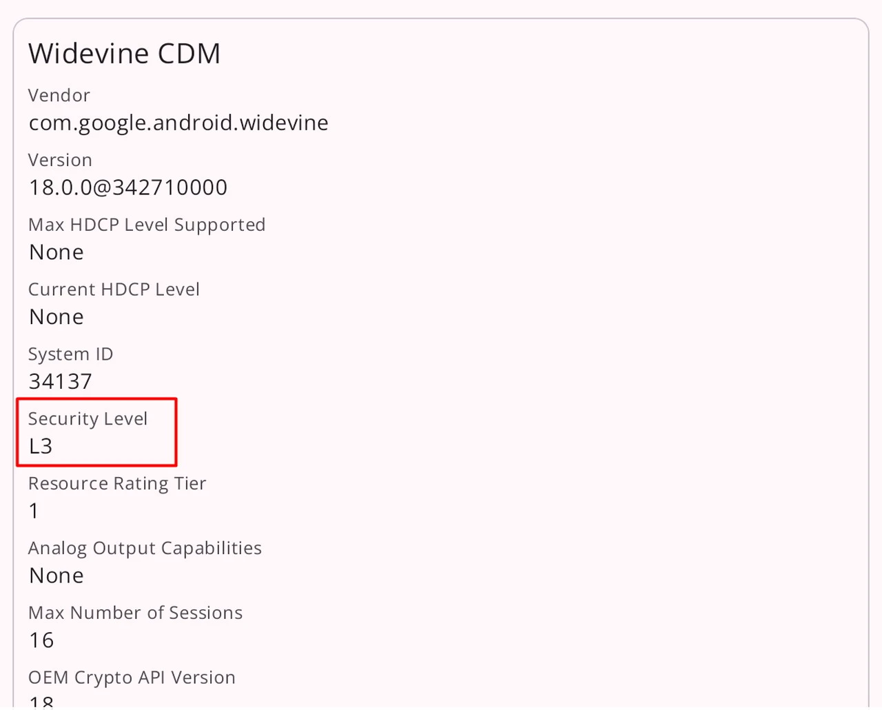 - Widevine L3