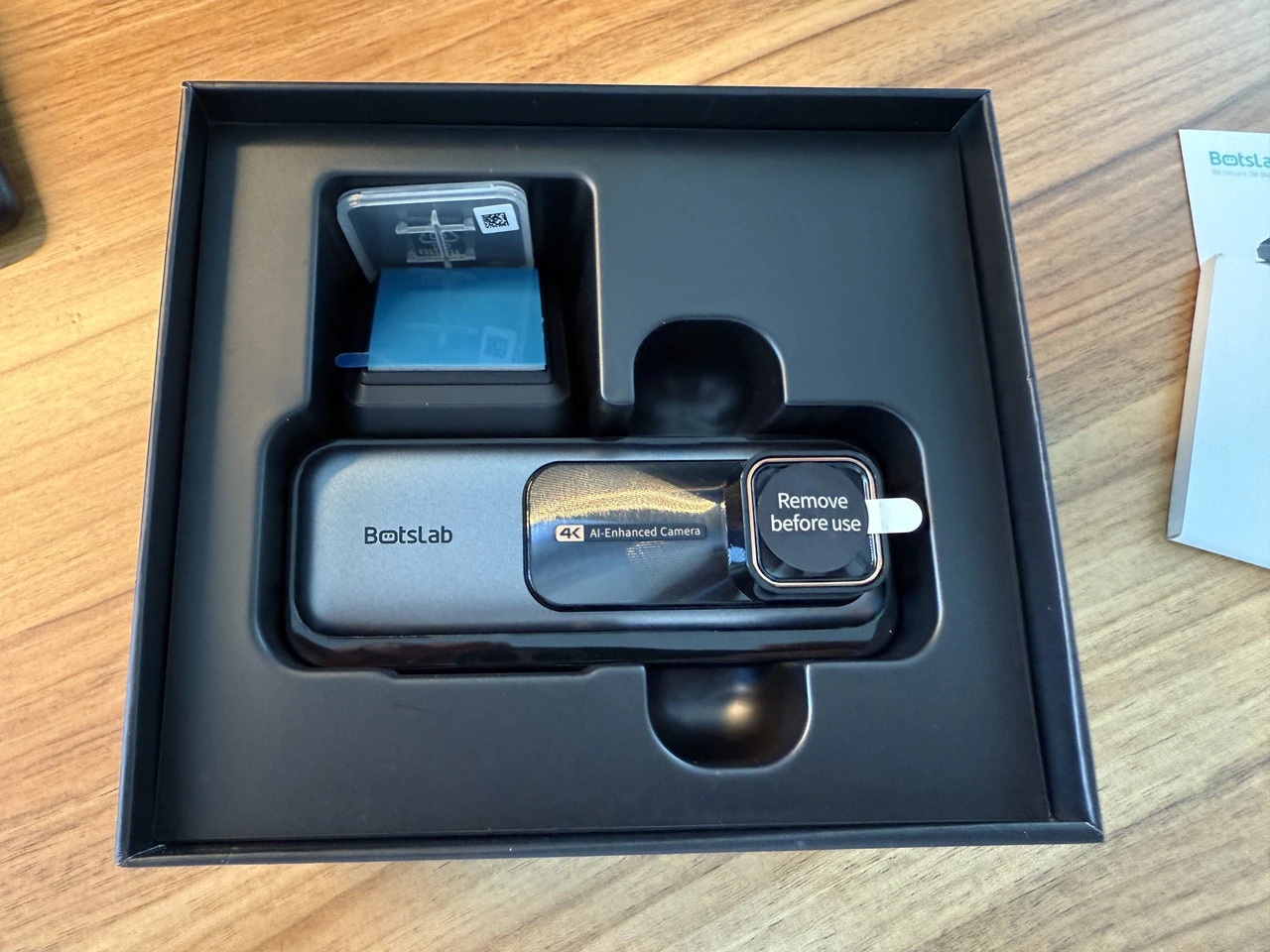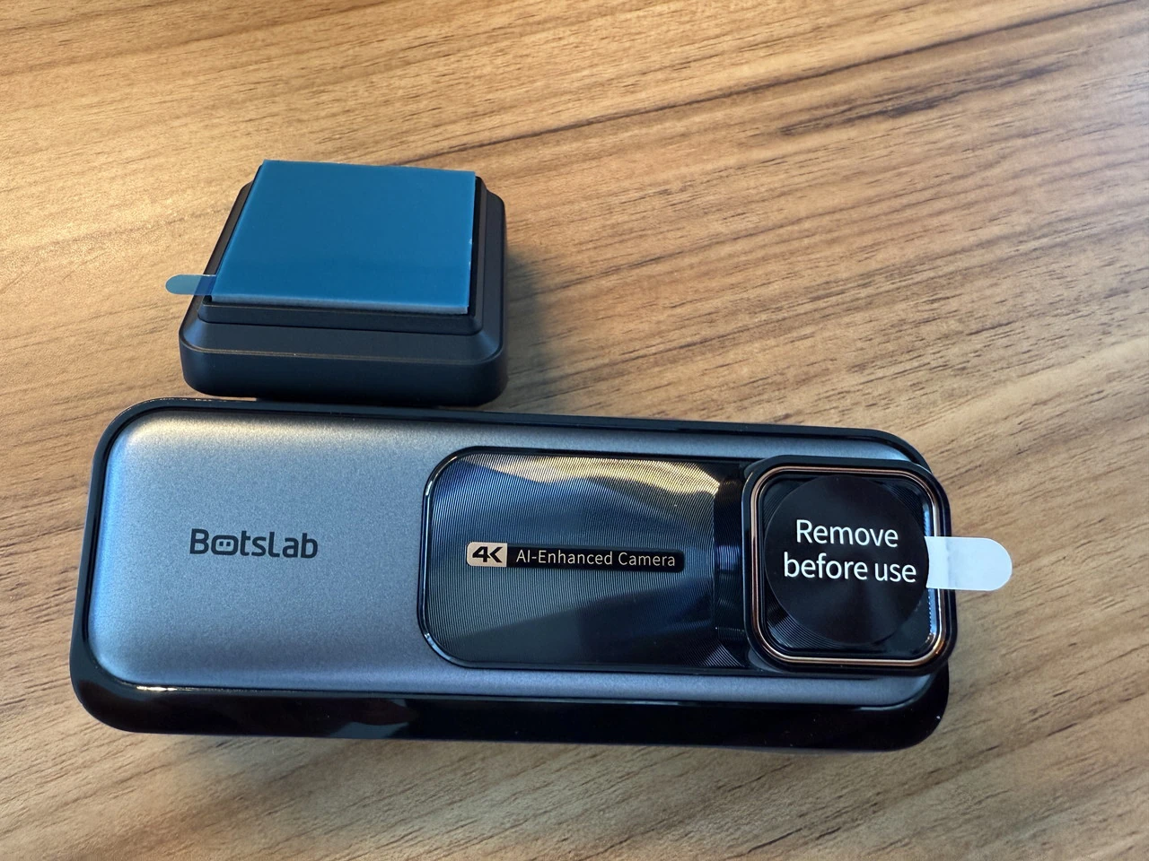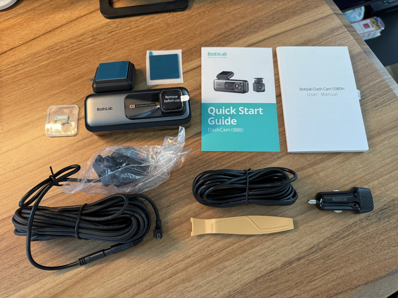 今回紹介する『BOTSLAB G980H』は、粘着取り付け式のドライブレコーダーだ。パッケージにはフロント・リア用のカメラが付属している。