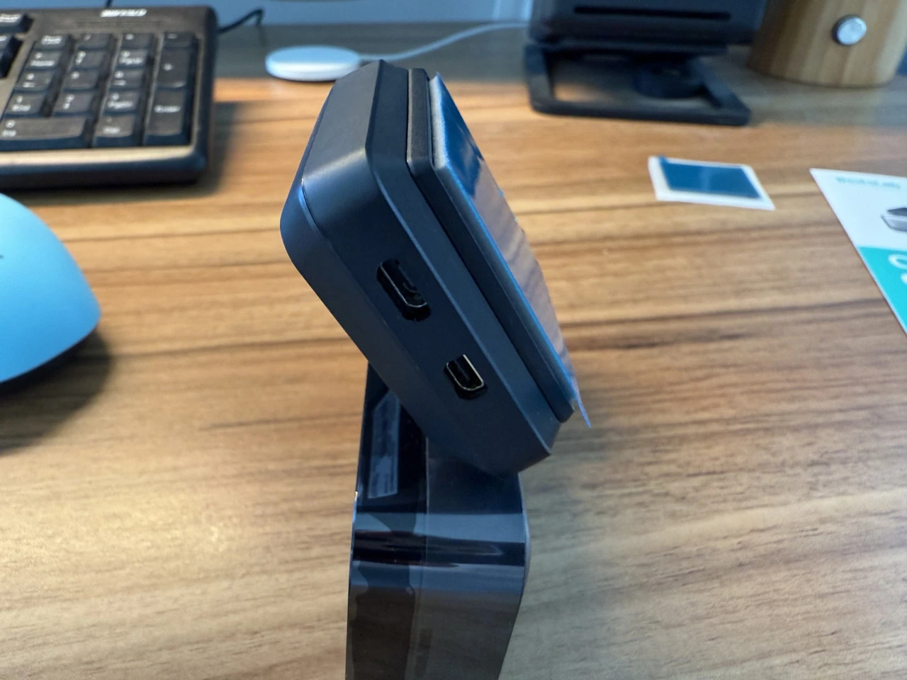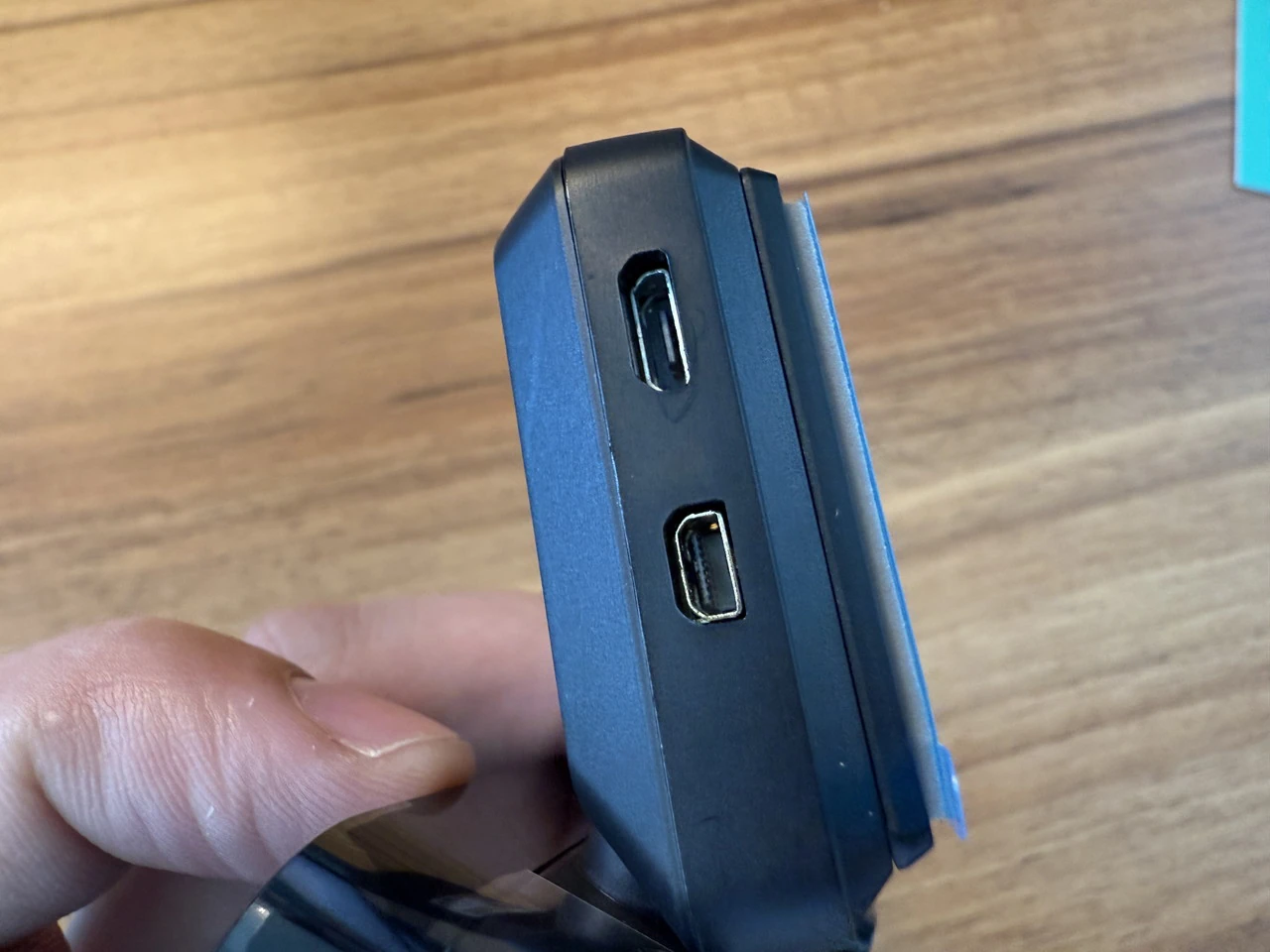 ▼側面には給電用ポートリアカメラ接続用ポートが用意。