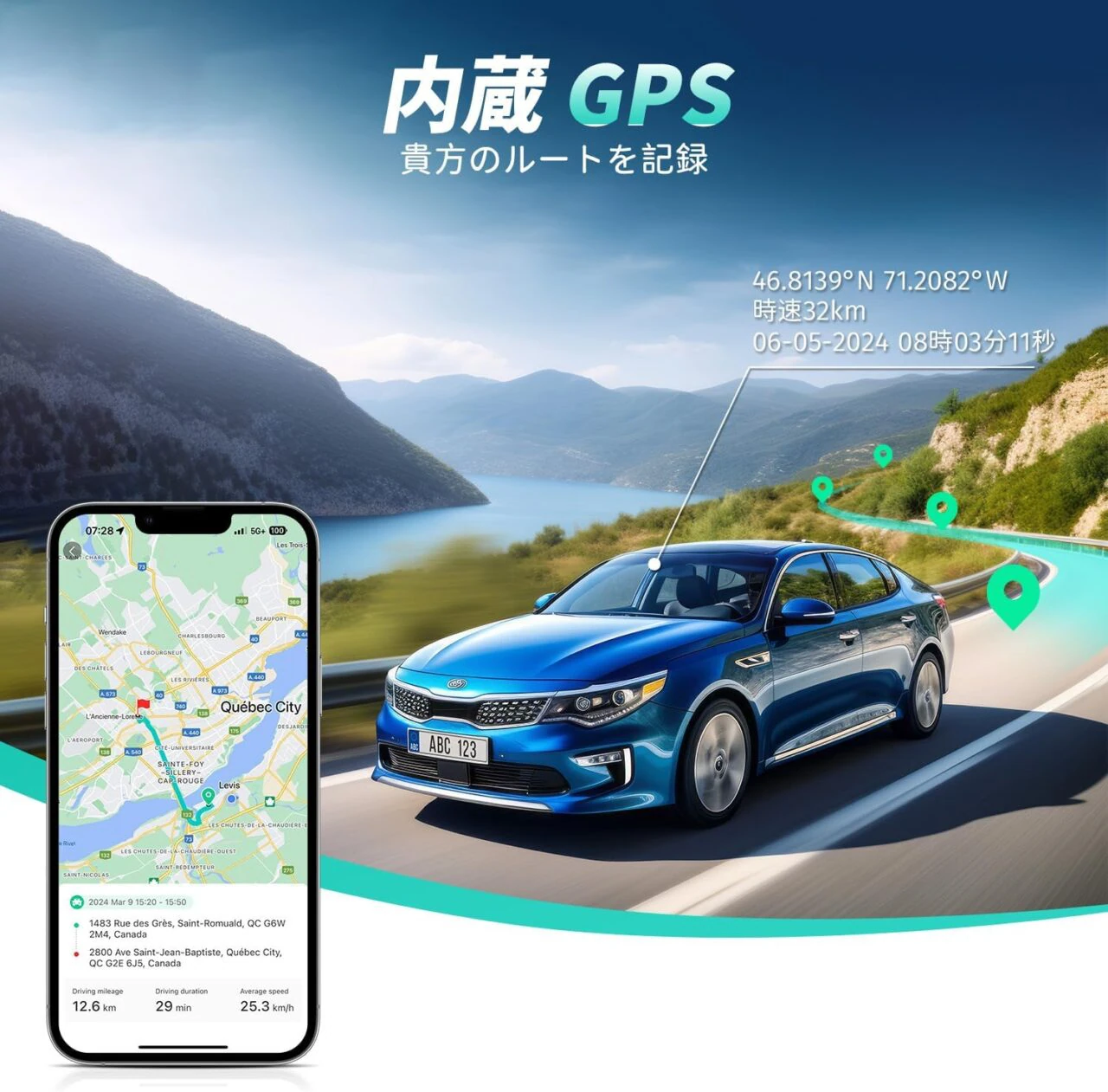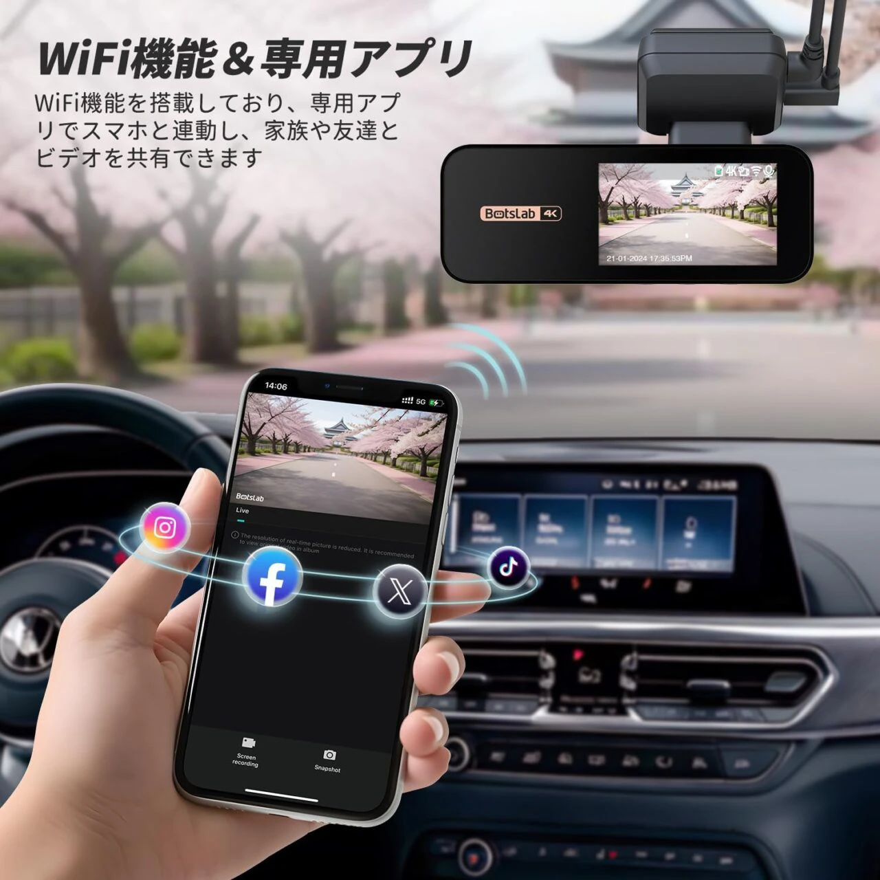 車両のエンジン始動時に録画を開始し、フロントカメラに搭載された2.45インチのIPS液晶で撮影映像をリアルタイムに表​​示する。それに、2.4G / 5Ghz WiFiでスマホに録画をダウンロードし、撮影データを他人と簡単に共有できる。