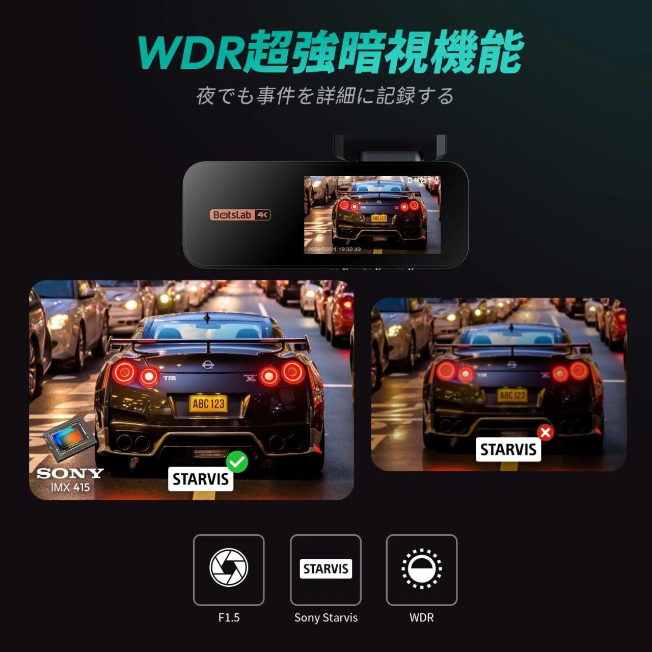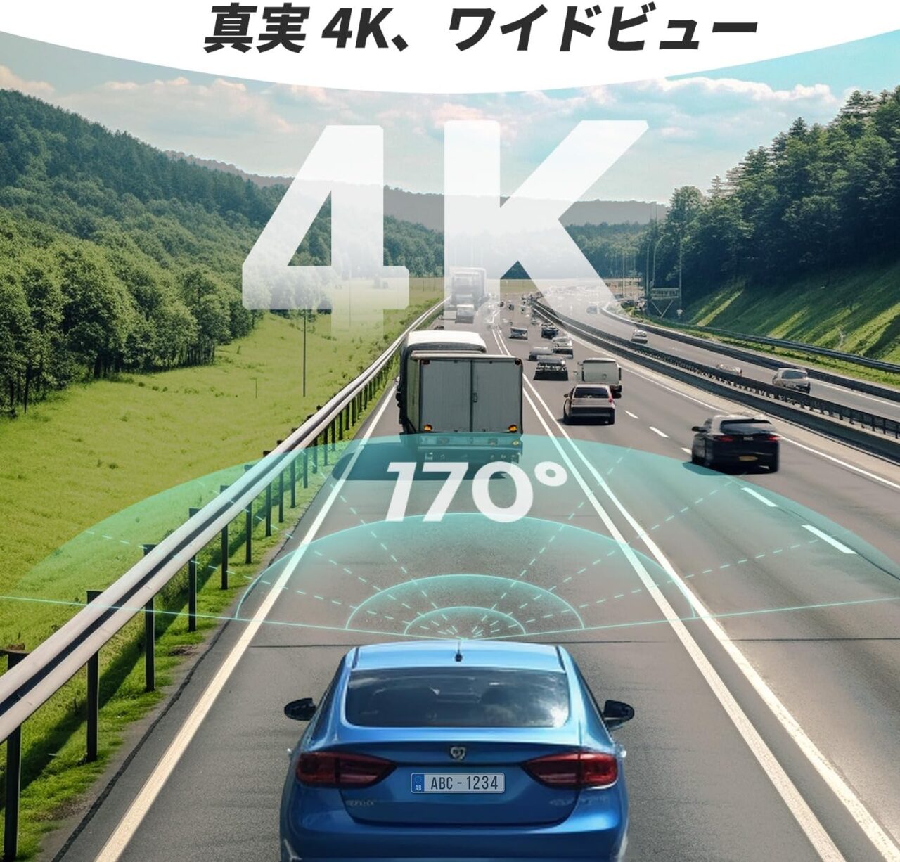 最高4K解像度、および最高170度の広視野角をサポートしており、鮮明な動画撮影が可能だ。「SONY IMX 415センサー」と「STARVIS」を内蔵しており、暗い場所でもナンバープレートや道路を明瞭に映し出すことが可能だ。