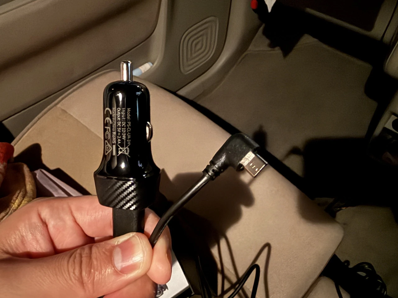 ▼ドライブレコーダーに給電するためのカーチャージャーが付属。