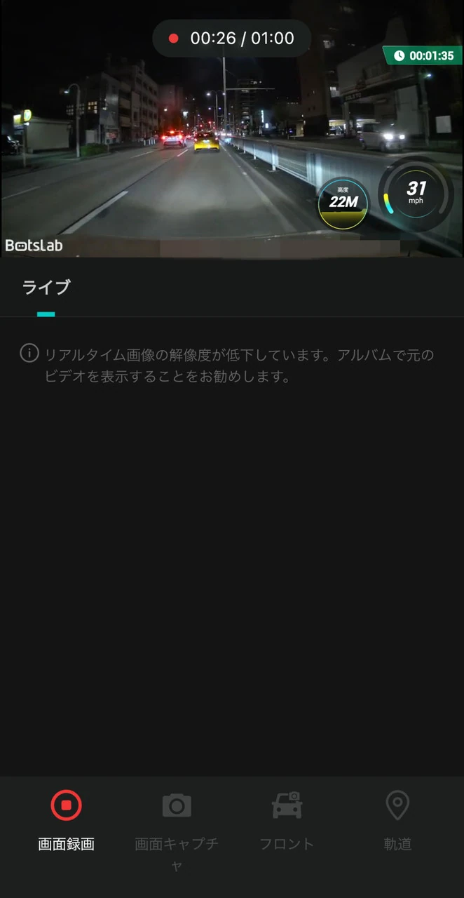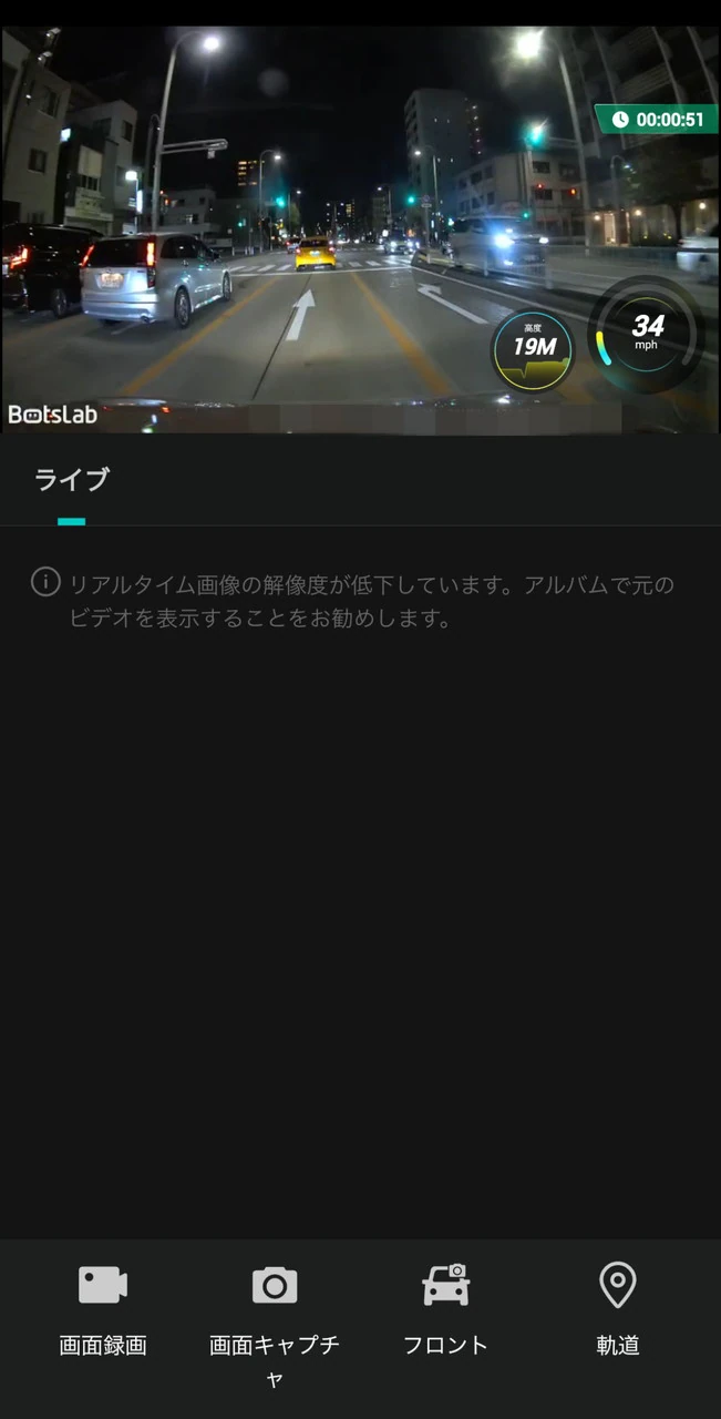 動画を観ても分かる通り、アプリ経由で録画した場合、画面上に走行軌跡、速度、高度などの情報を表示できる。