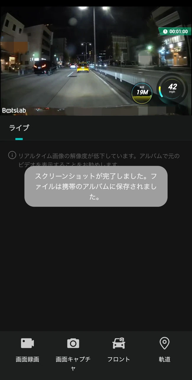 そしてカメラ性能は非常に優れており、夜間の暗い時間帯でも、フロントカメラ・リアカメラのいずれでも、非常に鮮明な画質で録画できていた