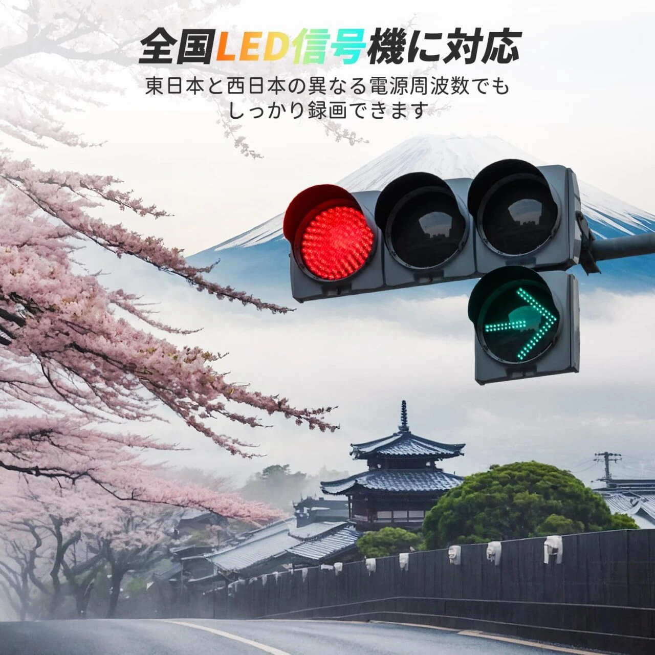 全国のLED信号機に対応しており、撮影時の信号機の点灯色をハッキリと録画できる。