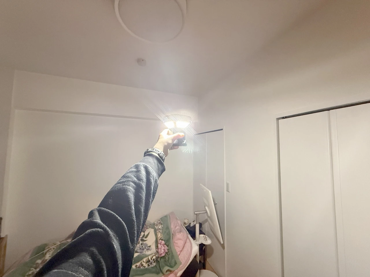最大3200lmという出力は強力で、試しに10畳ほどの室内で点灯させた場合、通常の天井照明に匹敵するほど、部屋の隅々までを明るく照らし出すことができていました。