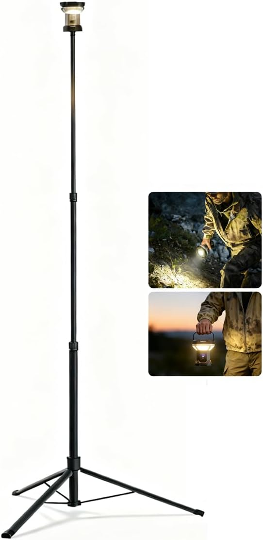 本製品には最大230cmまで伸長できる三脚が付属しており、キャンプライトの屋外設置時に役立ちます。