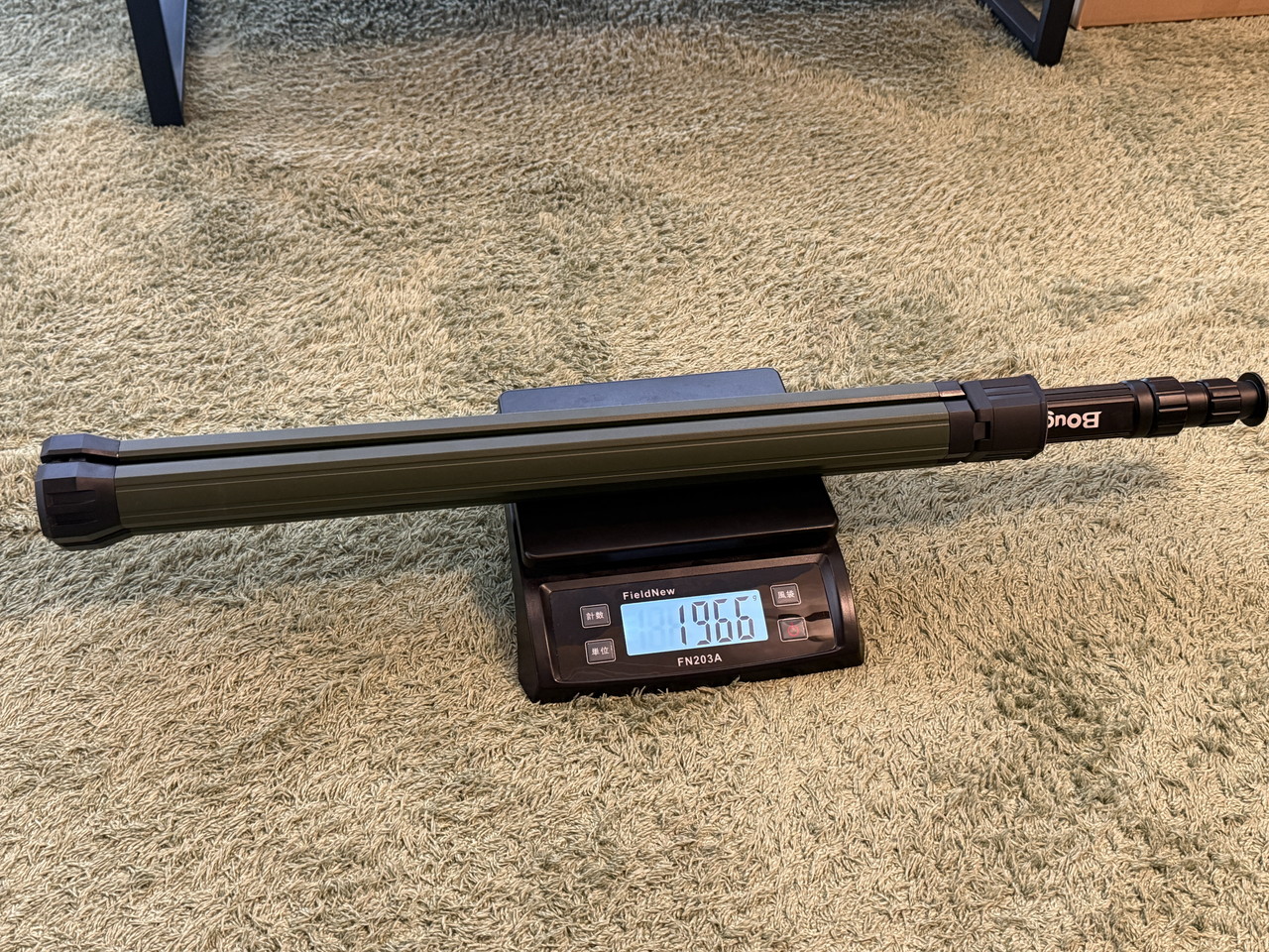 三脚のみの重量は、実測で約1,966gです。ややズッシリ感がありますが、そのぶん剛性が感じられます。