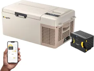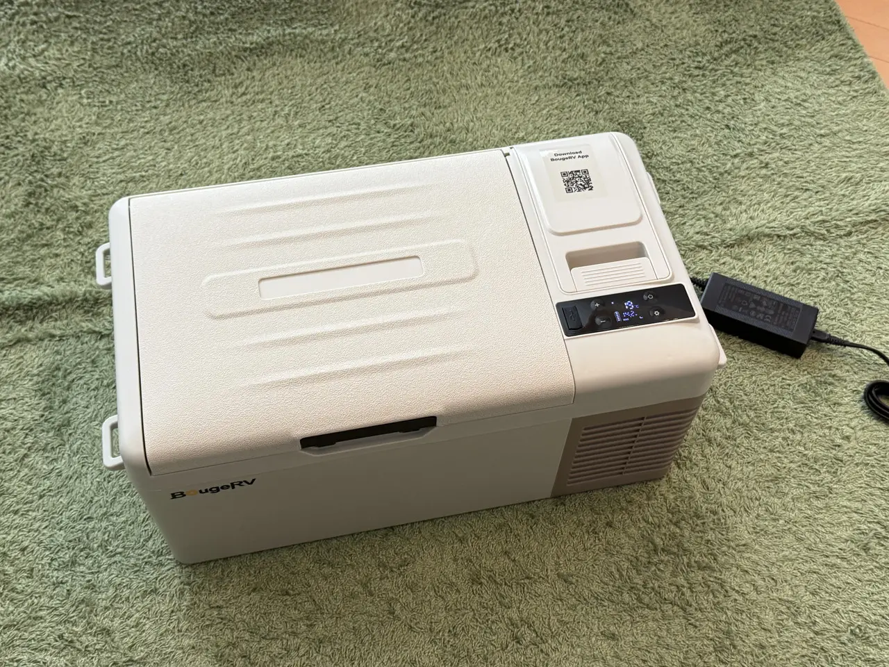以前当サイトでレビューした同ブランドの「BougeRV CRX2 ポータブル冷蔵庫」の廉価版とも言えるモデルだ。