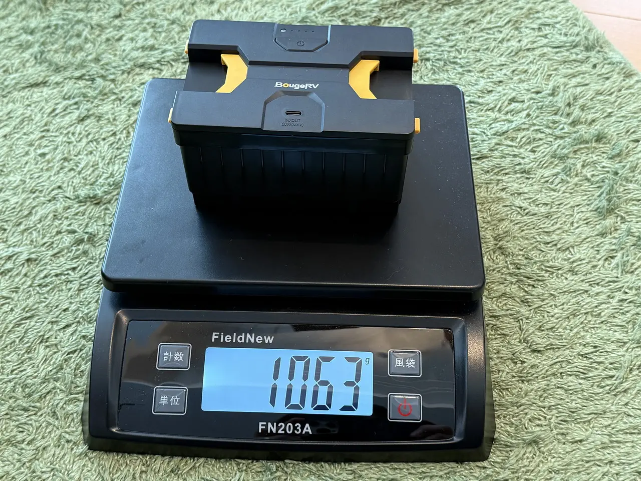 ▼バッテリーを取り外した状態の、『BougeRV CLB 15L』の本体重量は、実測で約8,749g。