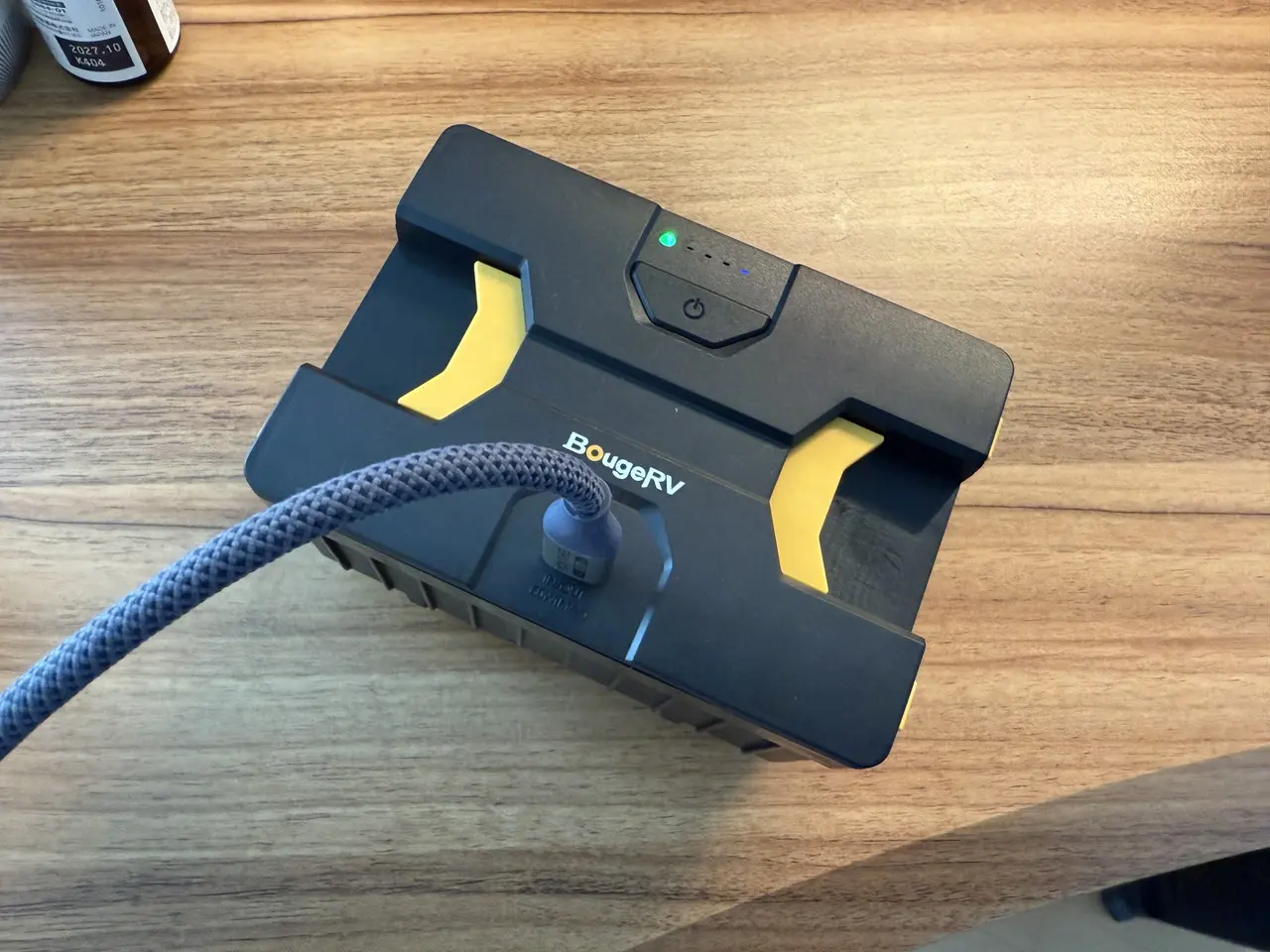 基本は電源コードによる有線給電式であり、屋外ではポータブル電源やソーラーパネルから給電することで利用できる。さらに、別売りのBougeRVバッテリーを装着することで、電源がない場所でもコードレス使用が可能に。