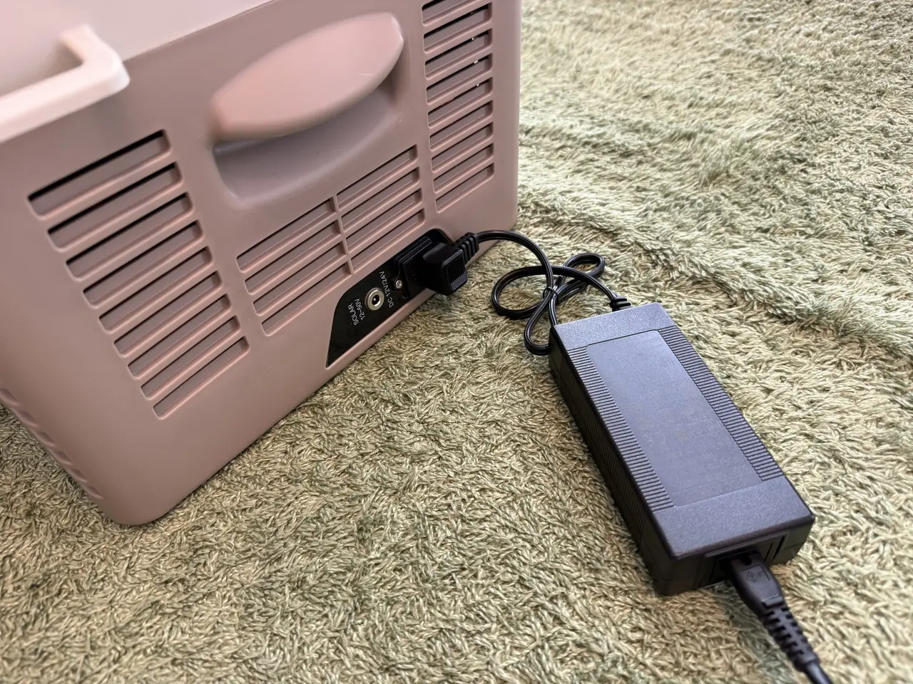 まず、付属ケーブル&アダプタでポータブル冷蔵庫に電源を供給する。