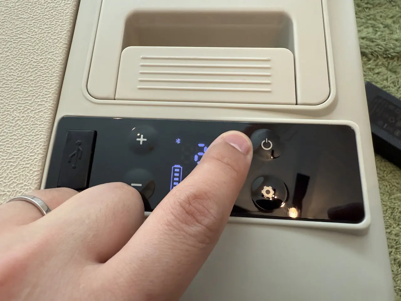 そして電源ボタンを押すことで、ポータブル冷蔵庫が起動し、冷却が開始される。