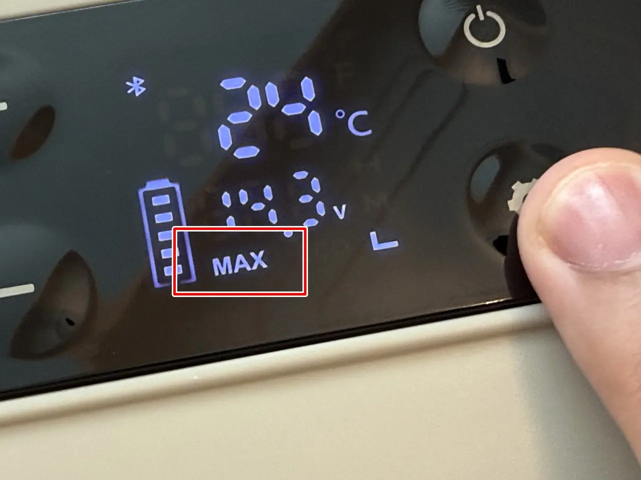 ▼MAXモードは素早く冷却したい場合に適しているが、そのぶん電力を消耗する。バッテリー駆動させている場合や、急速冷却後に庫内温度を一定に保ちたい場合には「ECOモード」を選択すると良いだろう。