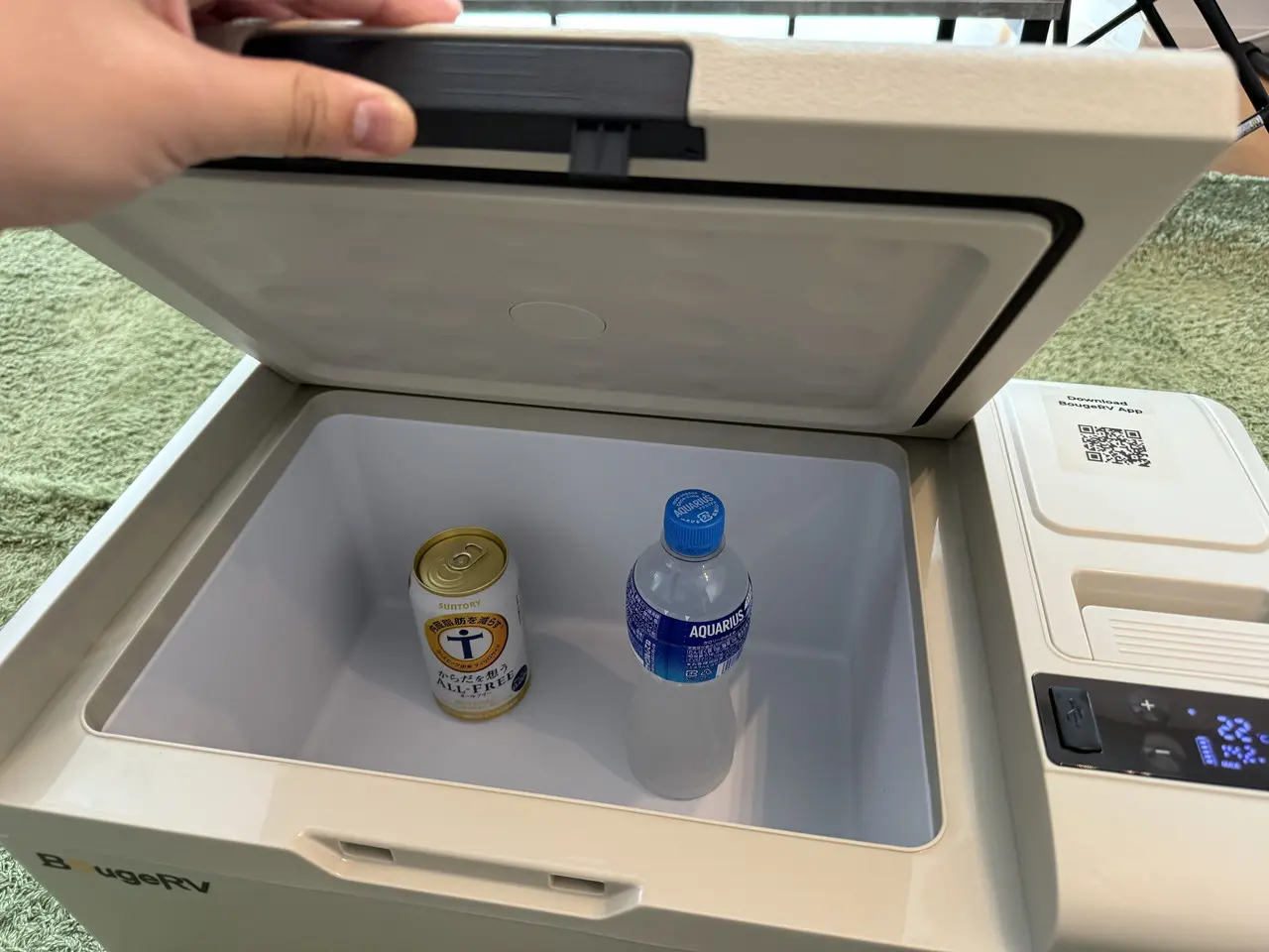 一方で、冷却能力に関しては、以前当サイトでレビューした同ブランドの「BougeRV CRX2 ポータブル冷蔵庫」と比べるとやや劣る。特に-20℃の下限まで冷却したい場合には、MAXモードでも40~50分ほど待つ必要があった。冷蔵に関しては問題ないが、冷凍庫として運用したい場合には、事前に庫内を冷凍温度まで下げておかないと、入れたものが冷凍前に溶けてしまう恐れがあるので注意が必要だ。