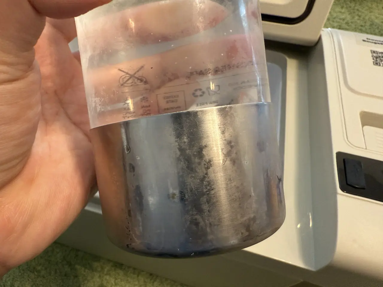 ▼冷凍庫の温度に設定したため、飲料下部は一部凍っていた。