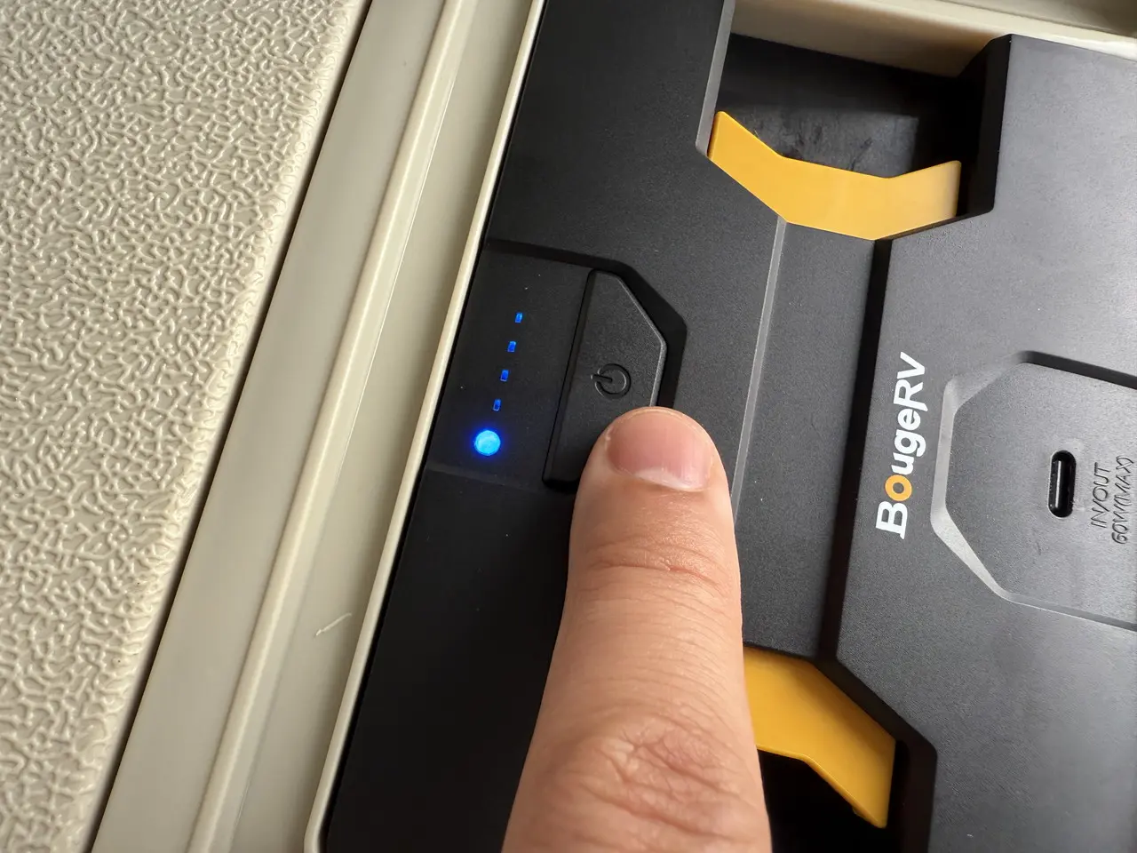そしてバッテリーの電源ボタンを長押しして起動することで、ポータブル冷蔵庫に電源が供給される。