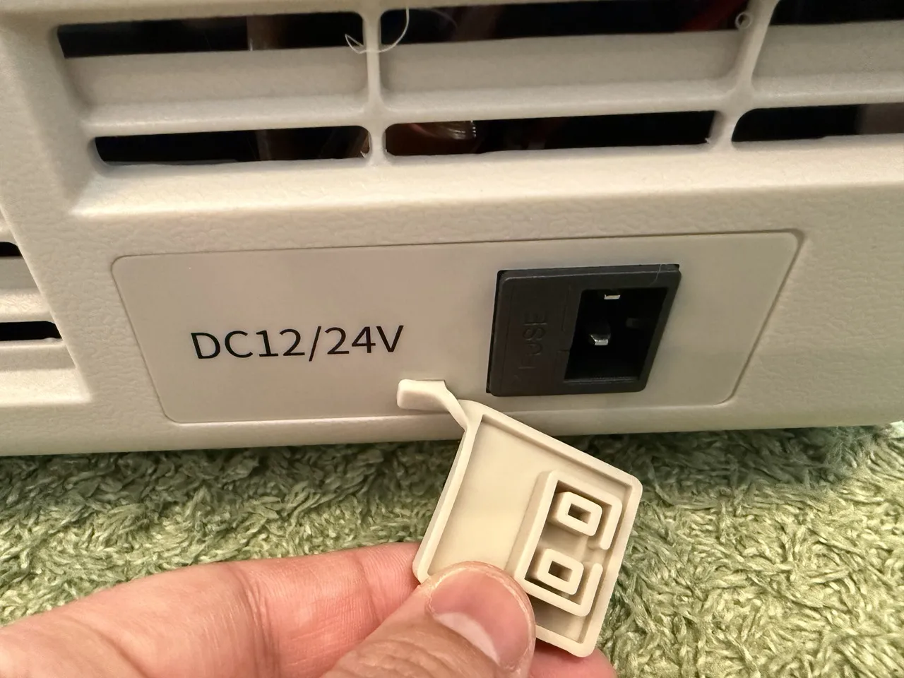 まず、コンセントや車載シガーソケット経由で、冷蔵庫に電源を供給します。