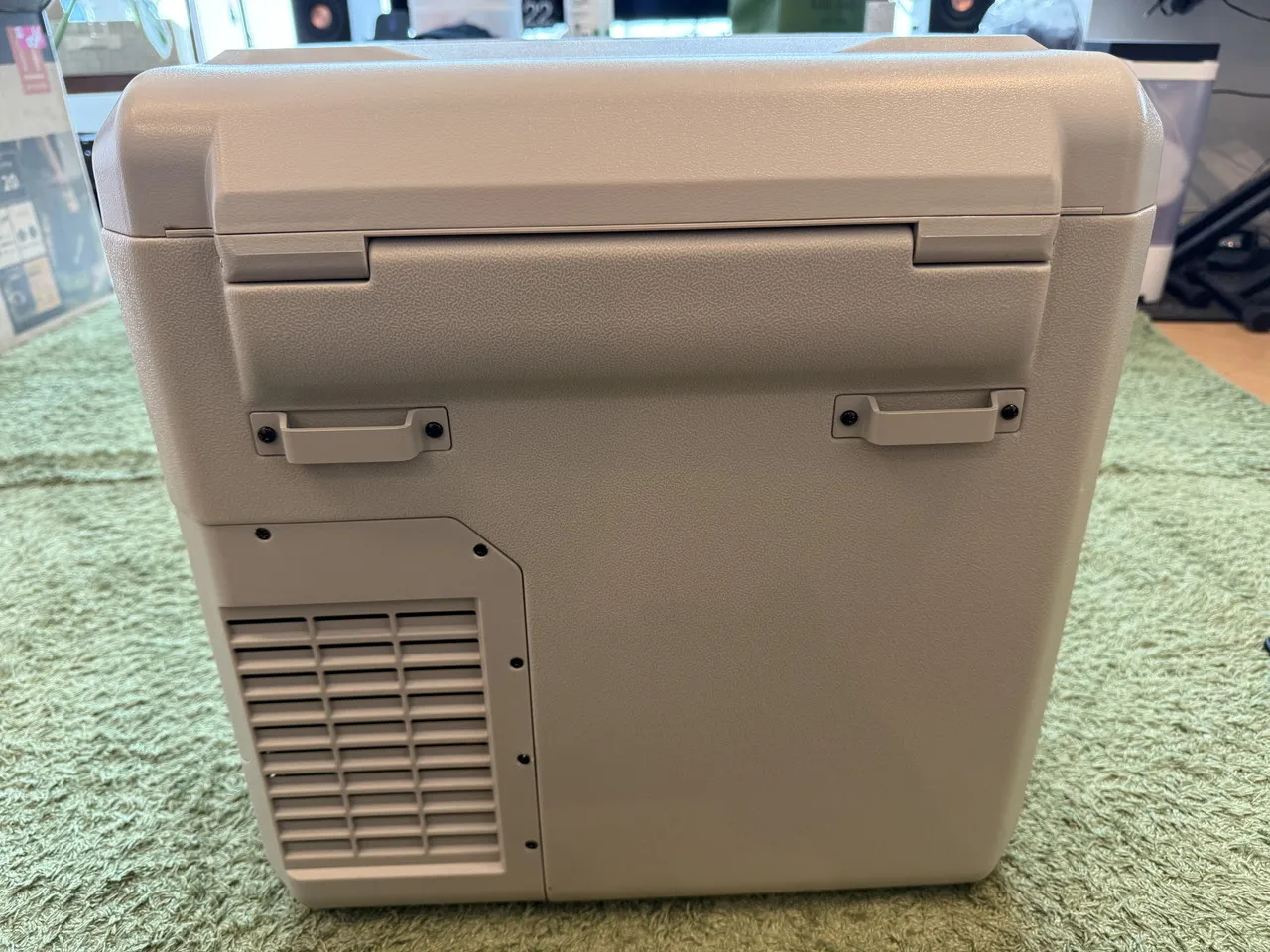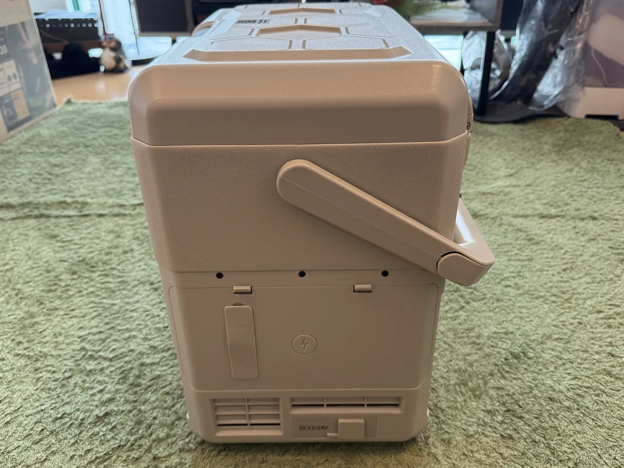 CRH 20L本体のサイズは約480×342×464mmで、一般的な車載冷蔵庫と比べると、横幅が抑えられている分、やや高さがある印象です。設置スペースが抑えられる一方で、収納時や持ち運び時には高さに気を付けた方が良いでしょう。