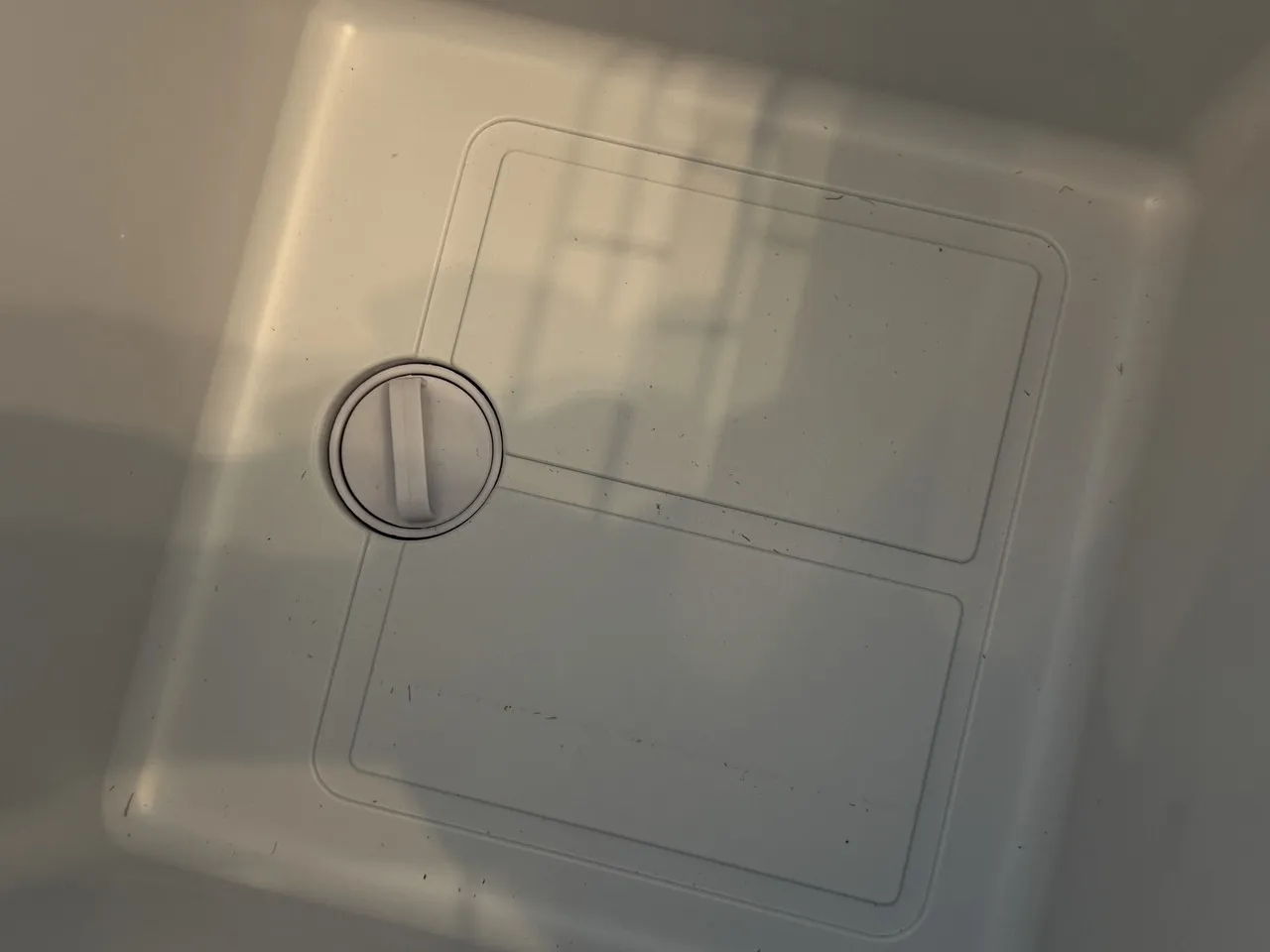庫内左側の底部には、結露した水分を排出するための排水栓が用意されています。一方、右側は下部にコンプレッサーを内蔵しているぶん、底上げされた構造になっています。