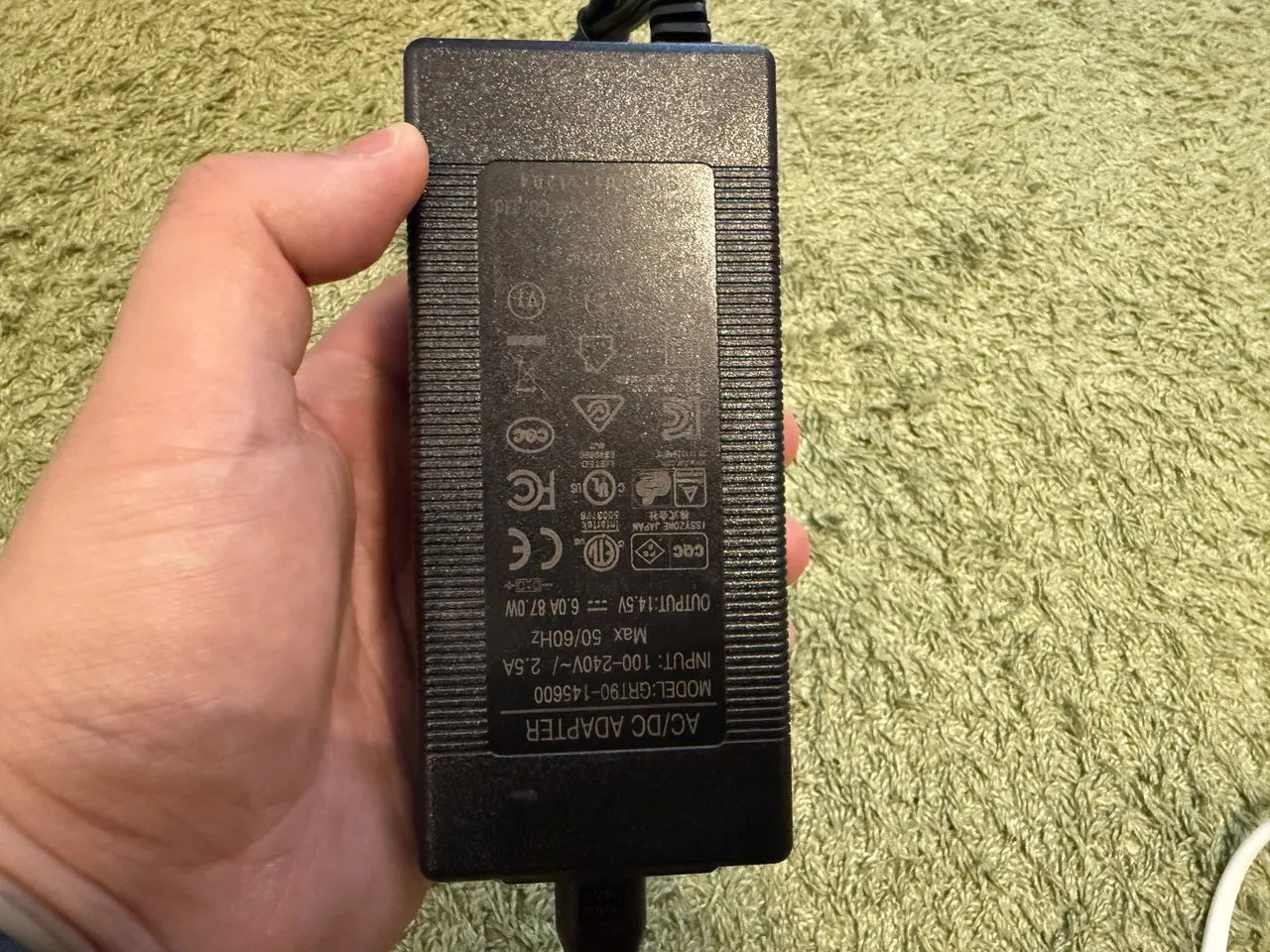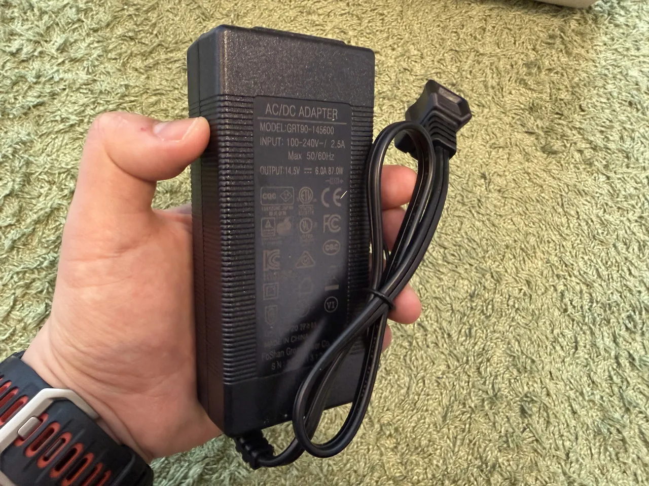 BougeRV CRH 20Lの電源アダプタを手に持っている