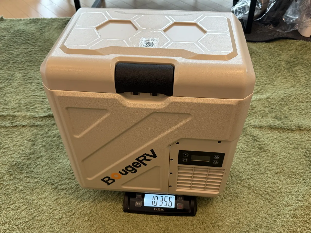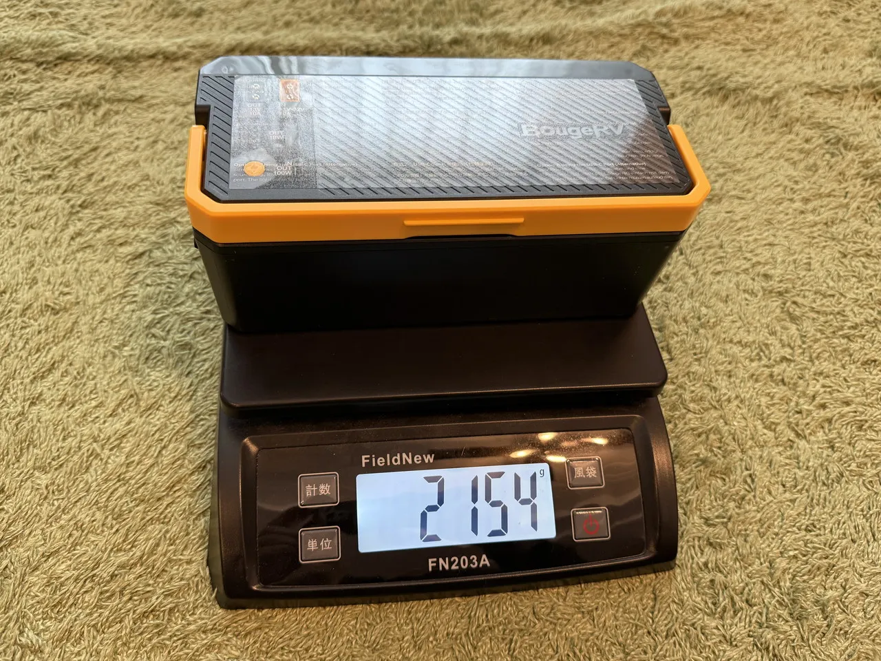 バッテリーを取り外したBougeRV CRH 20Lを計量している