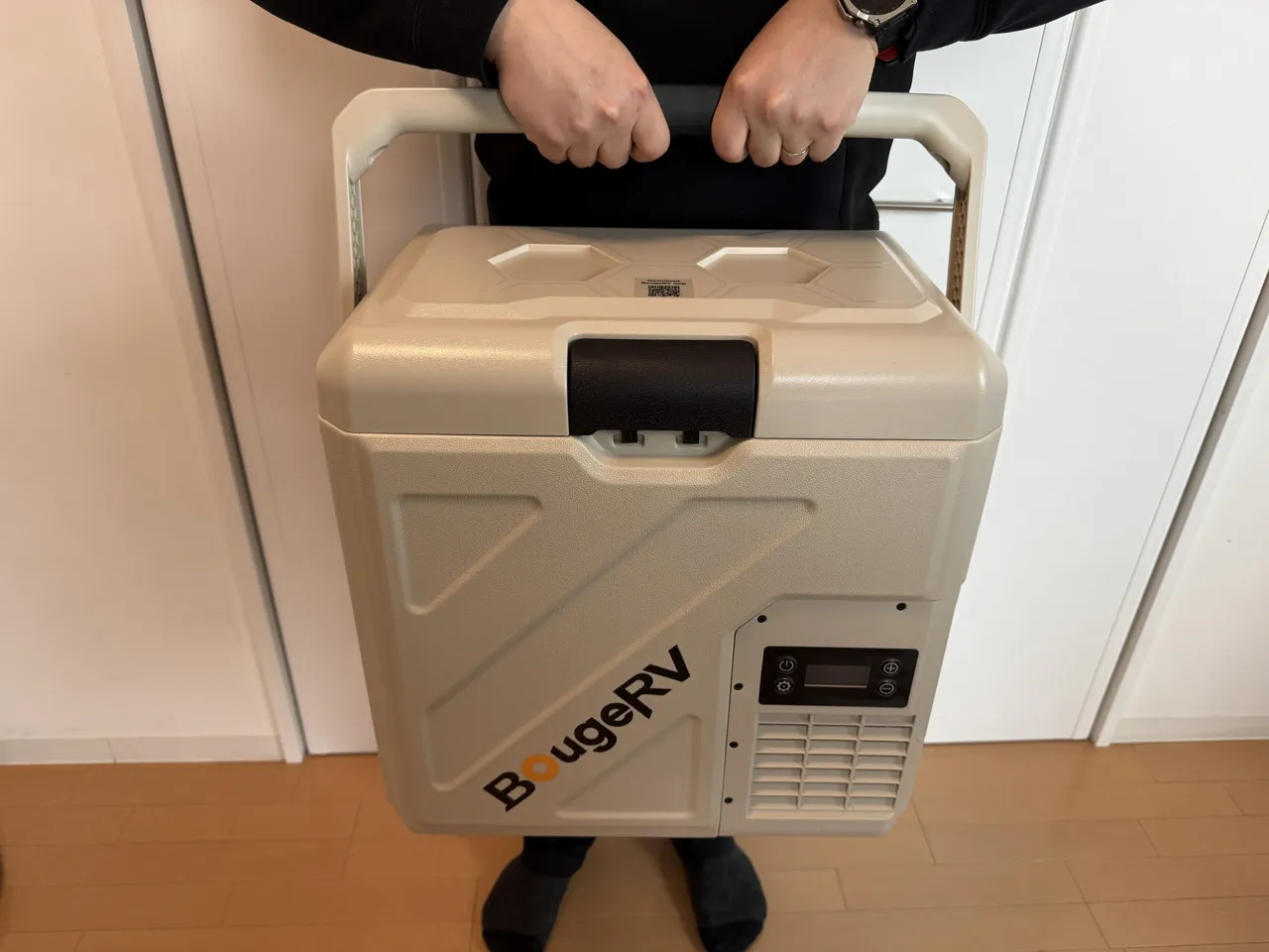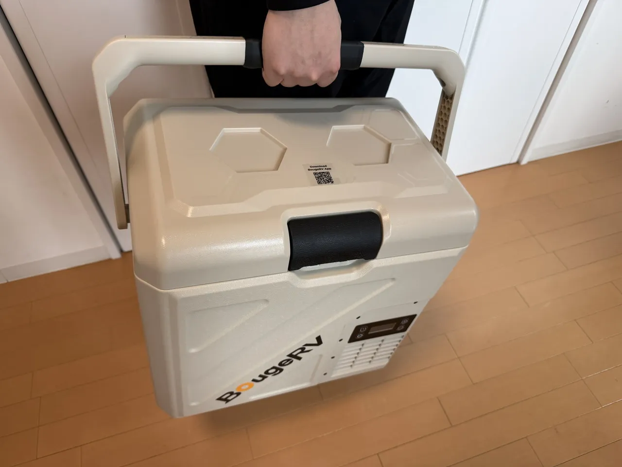 BougeRV CRH 20Lの取っ手を両手で掴んで持っている