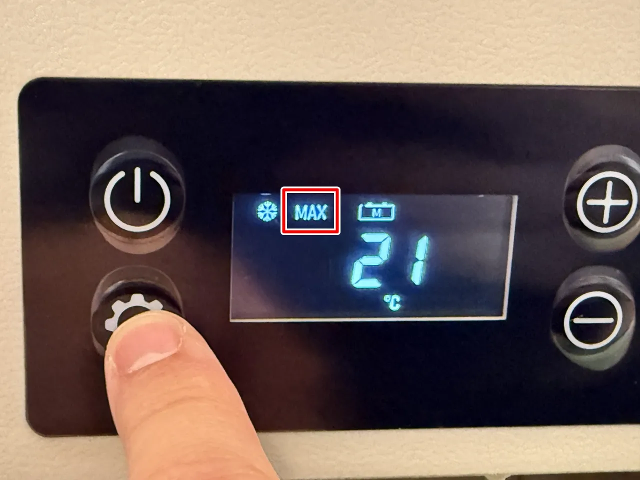 BougeRV CRH 20Lの操作ボタンと液晶スクリーン