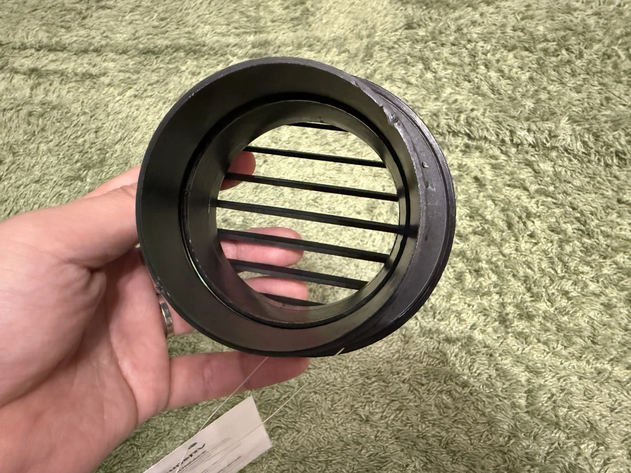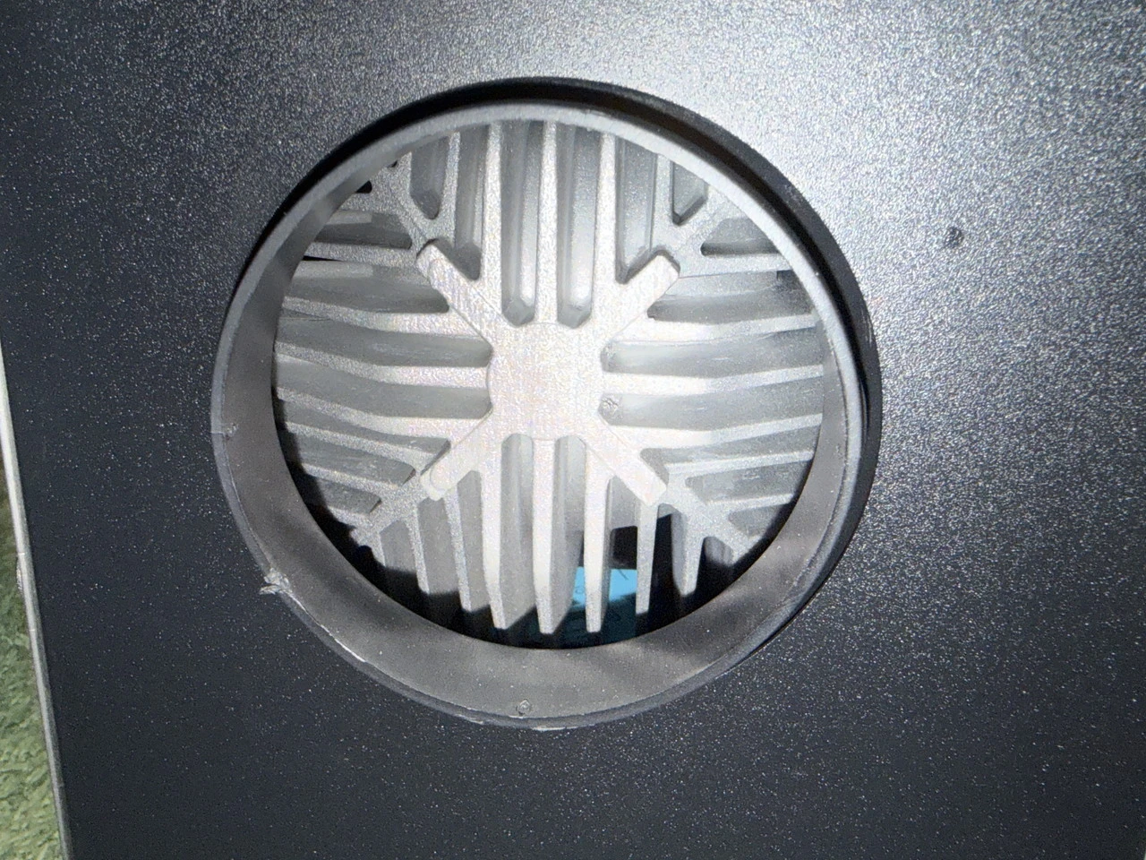 ▼3インチ温風吹き出し口(Ø75mm)。温風の吹き出し方向を整え、熱を効率よく拡散させるためのパーツです。