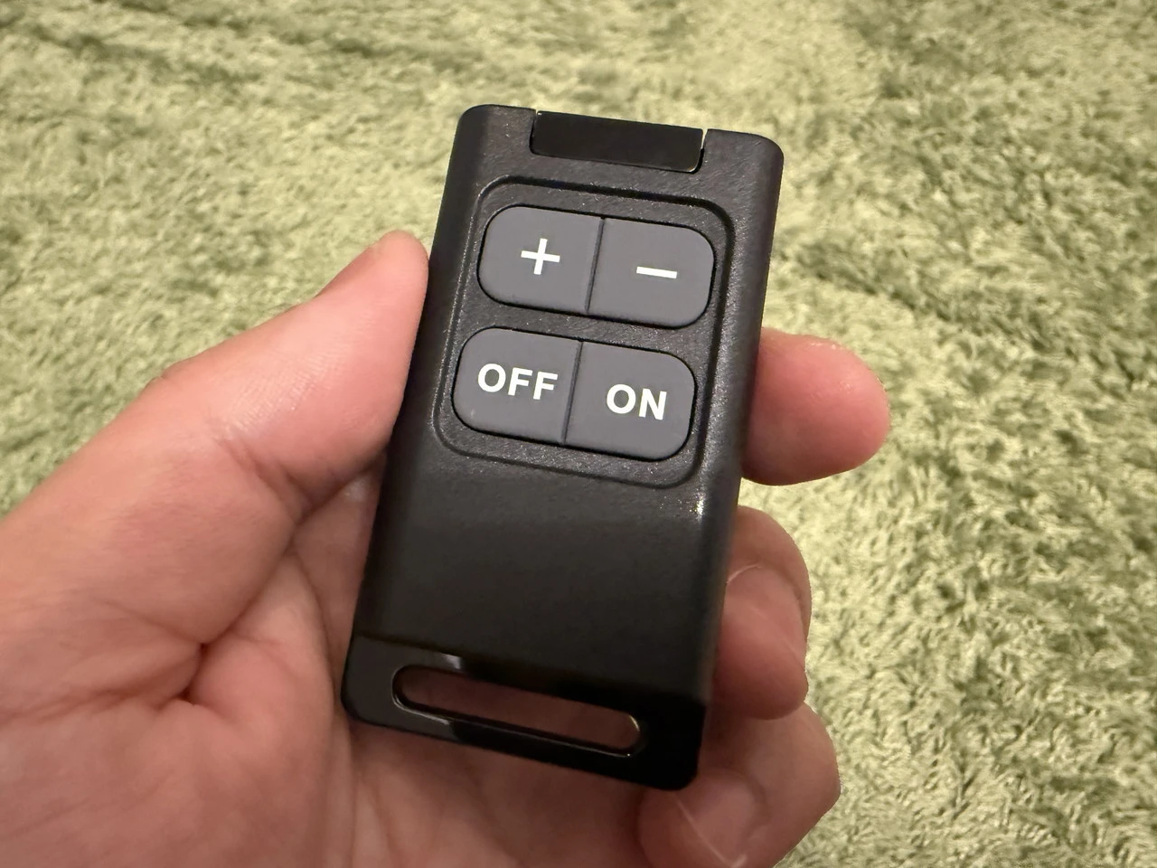 ▼ワイヤレスリモコンも付属。ペアリング済みのヒーターを遠隔操作できます。