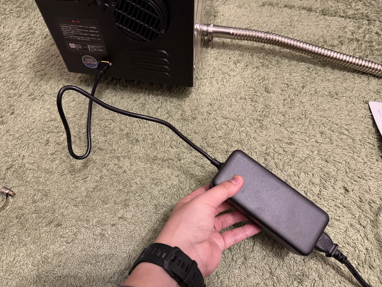 一方で注意したいのが、付属の温風ダクトです。断熱仕様ではないため、使用中はかなり高温になります。テント内へ引き込む際は、ダクトが周囲の物に触れないよう、設置位置には気を配る必要があります。