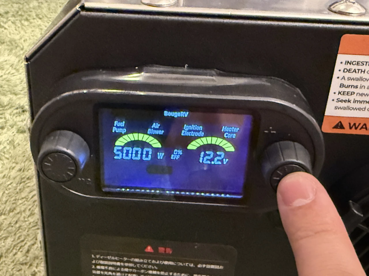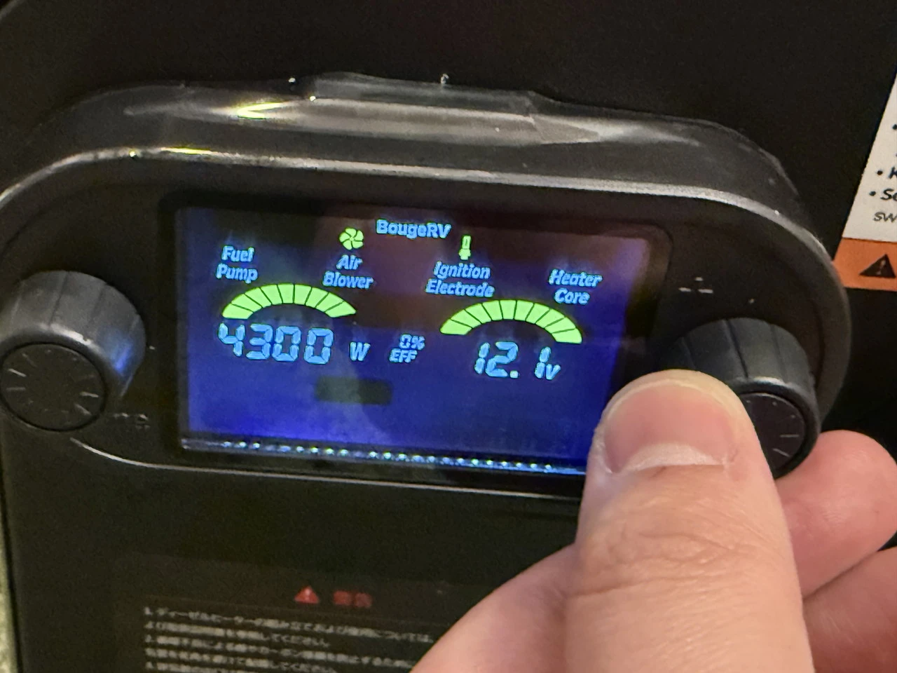 LCD操作表示パネルのノブを押し込み、ヒーターの電源をオンにします。