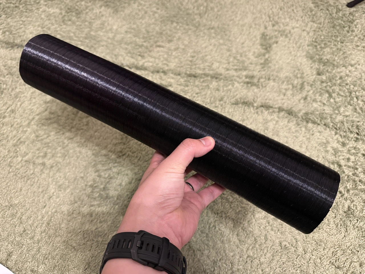 持ち上げた際の重心はちょうど中央あたりにあり、重量感がありつつも持ち運びやすさにも配慮されていると感じられます。