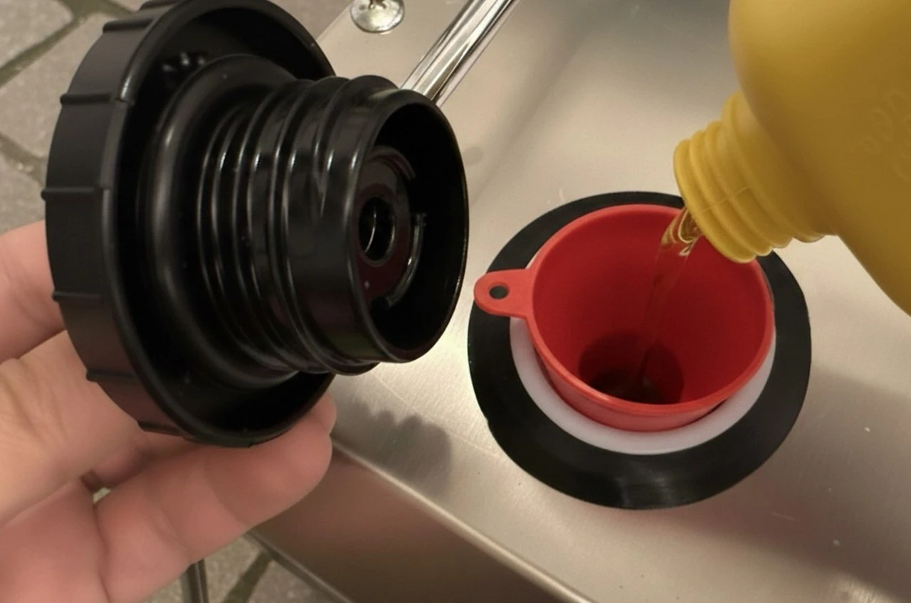 上部の燃料キャップを開け、軽油を最大5Lまで注入します。