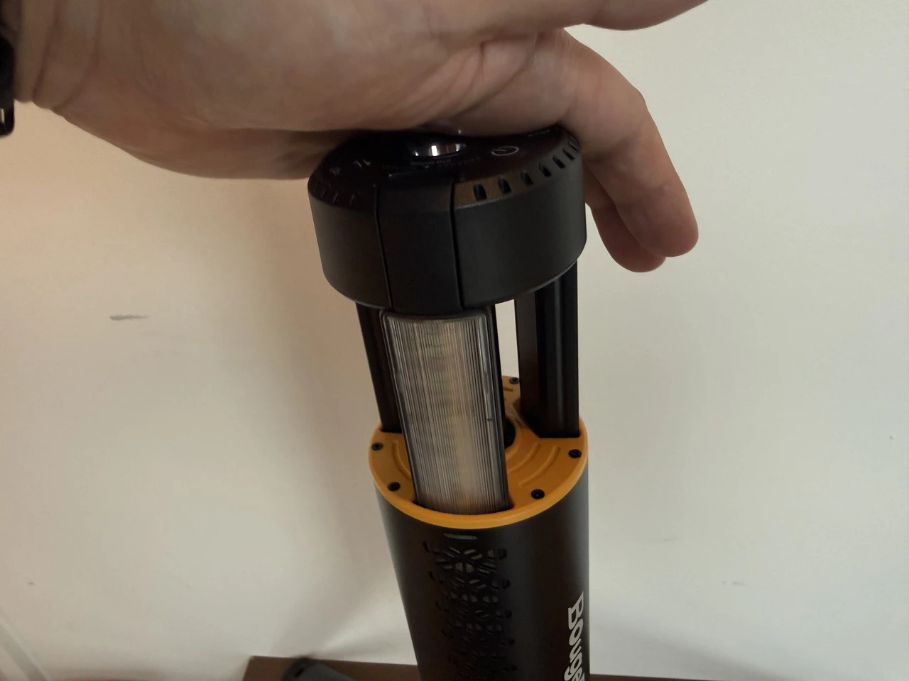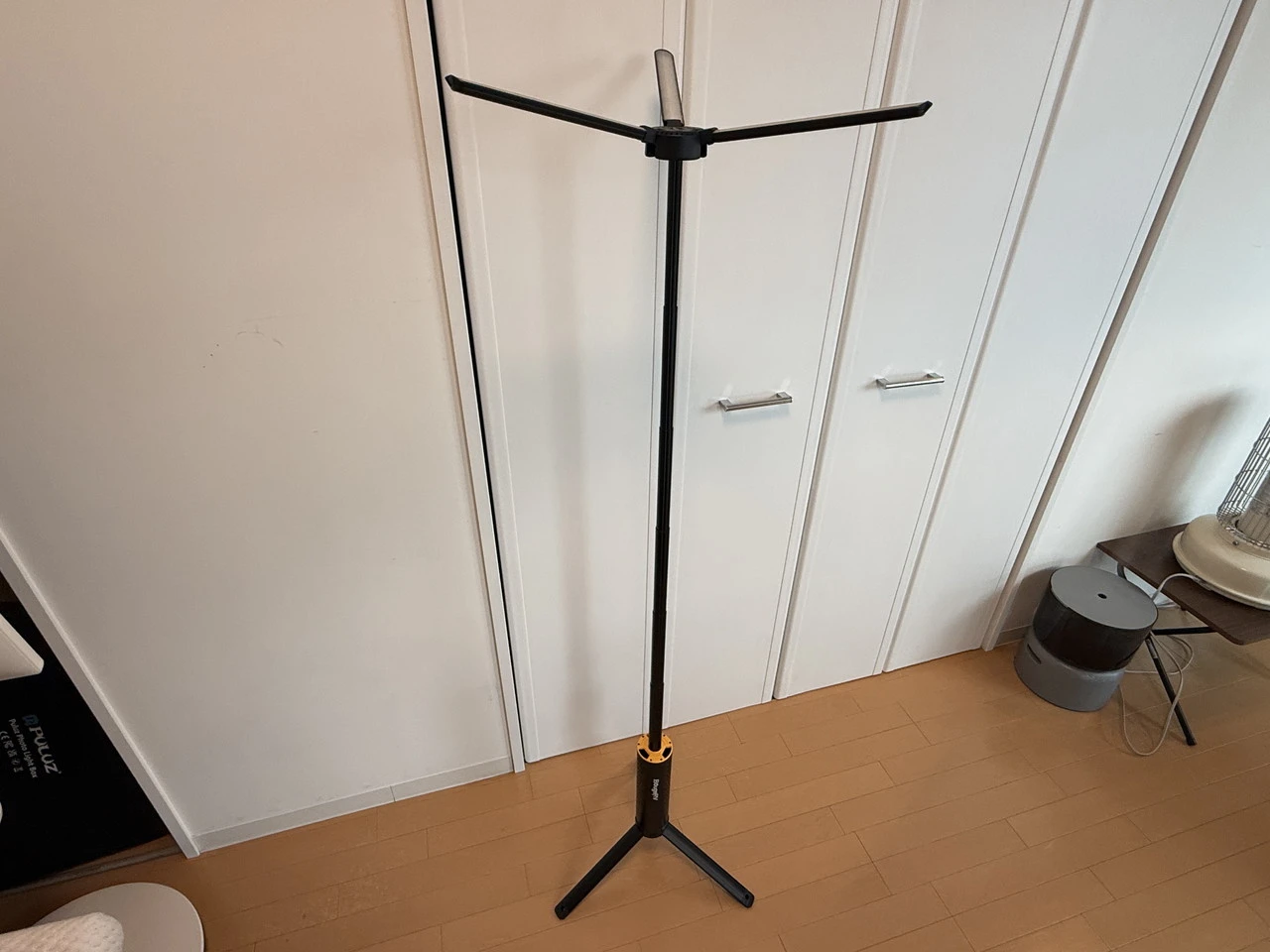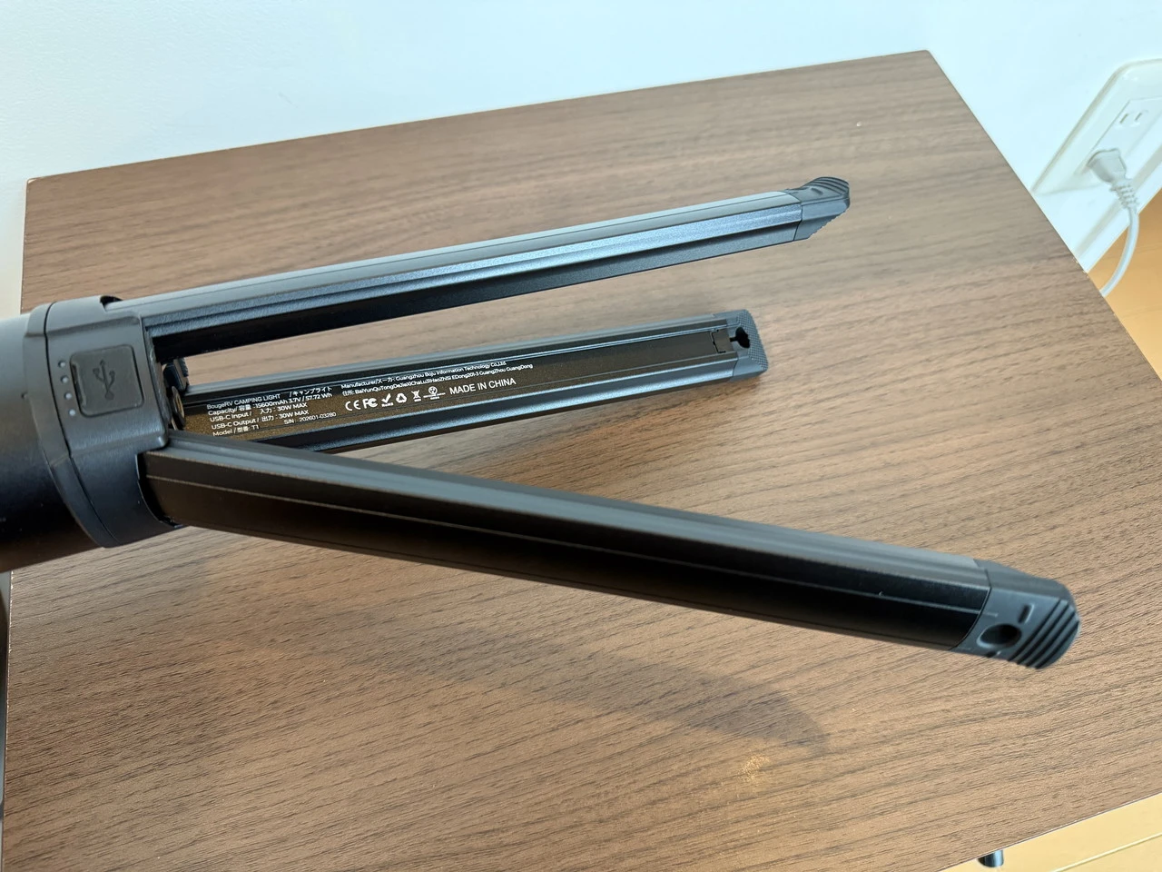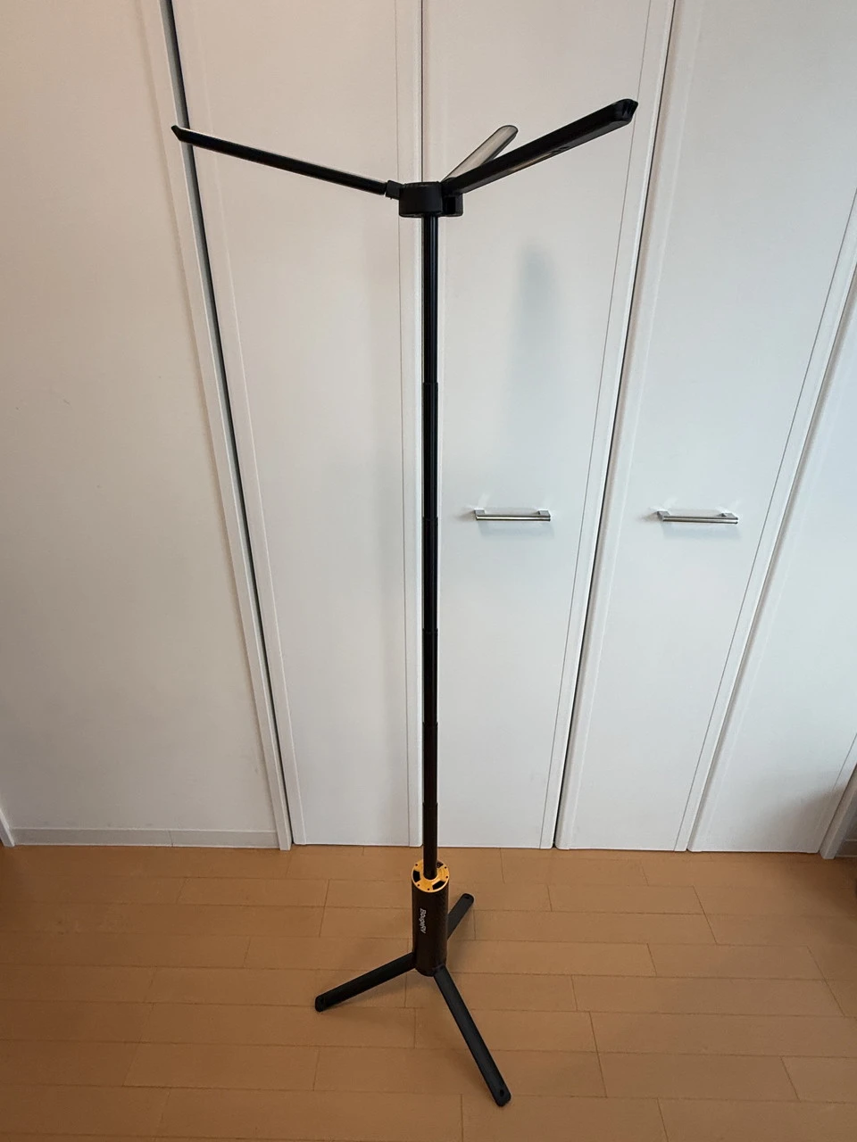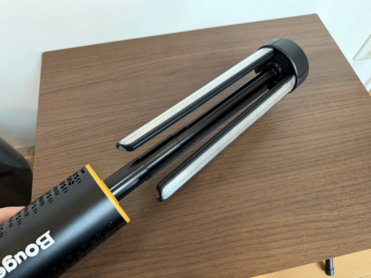 上部を引き上げると本体が伸び、3本のライトパネルが現れます。