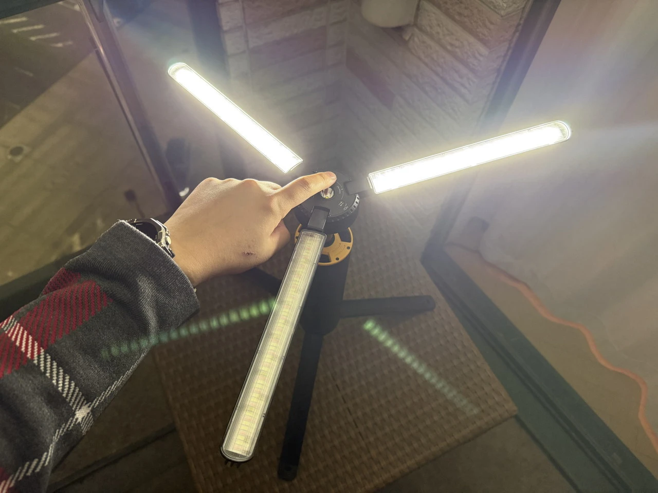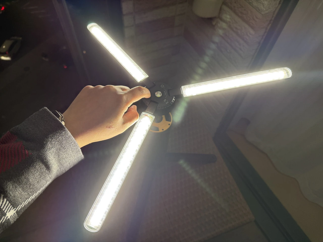 特に、最大3,000lmの明るさと、3枚のライトパネルを活かした照らし方の自由度の高さが最大のメリットだと感じました。テーブル周りを照らす手元灯としても、周囲をしっかり照らすエリアライトとしても使いやすく、キャンプや車中泊はもちろん、屋外作業や防災用途でも実用性が高いです。