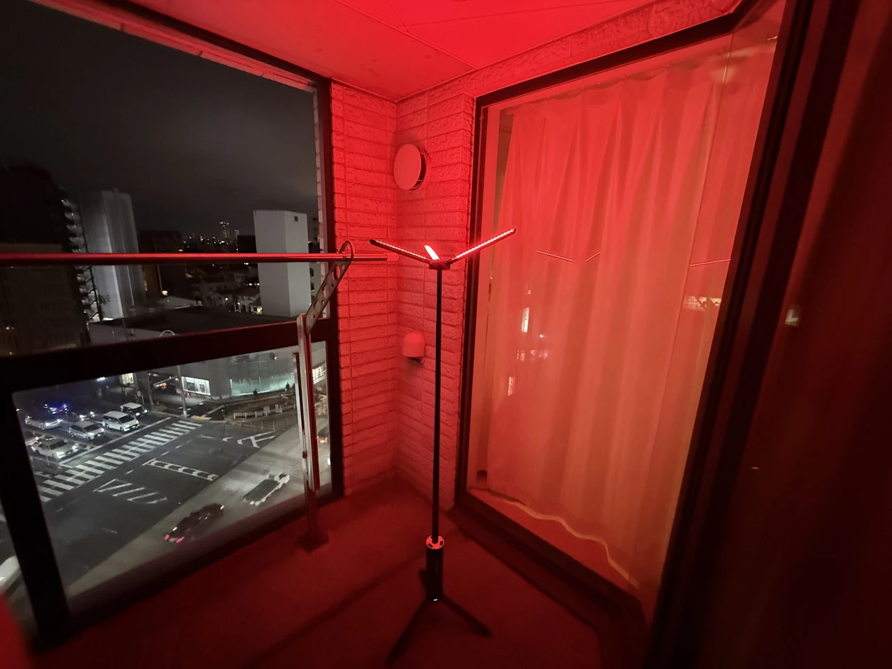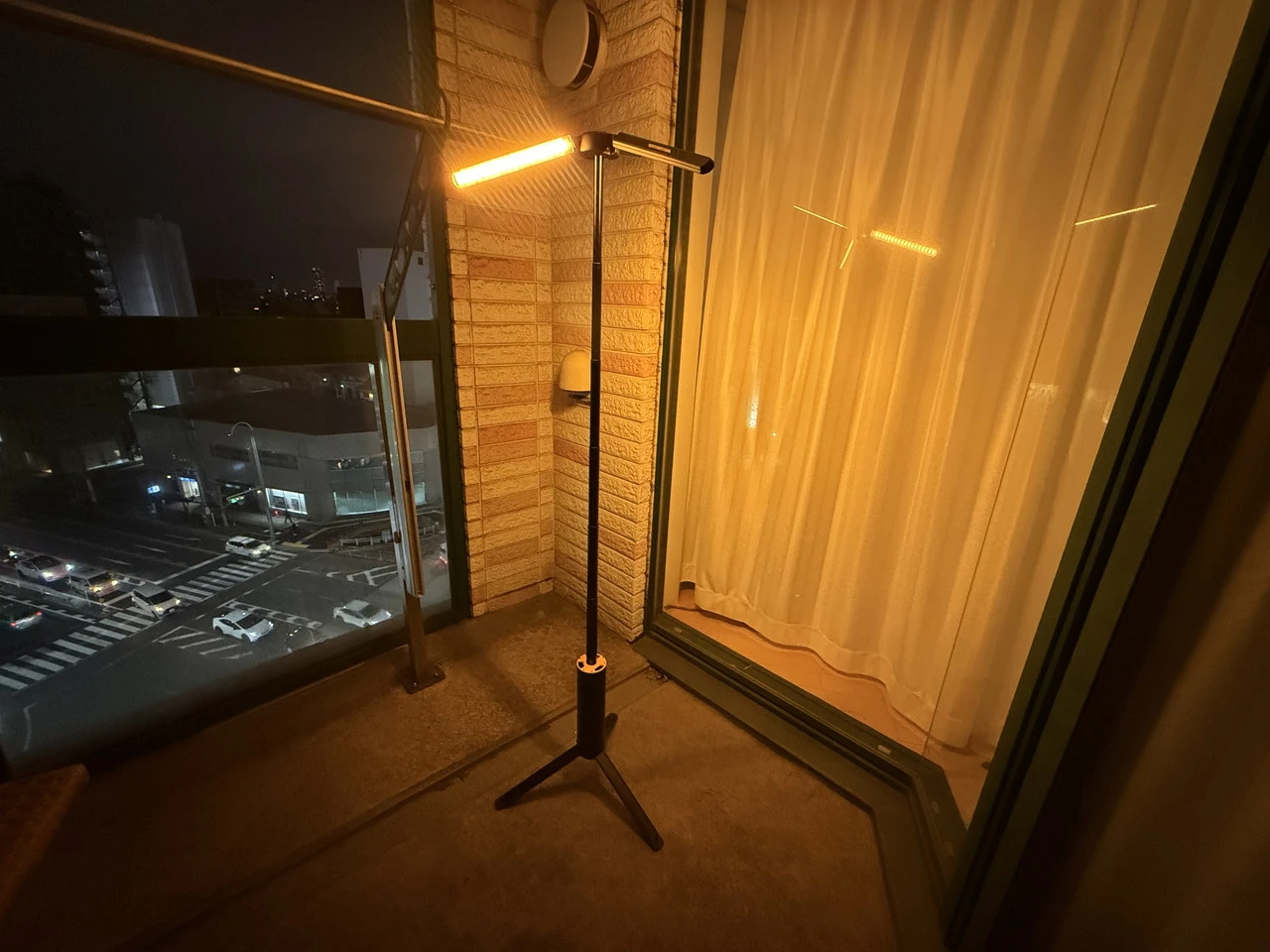 実際に夜のベランダで点灯させてみました。