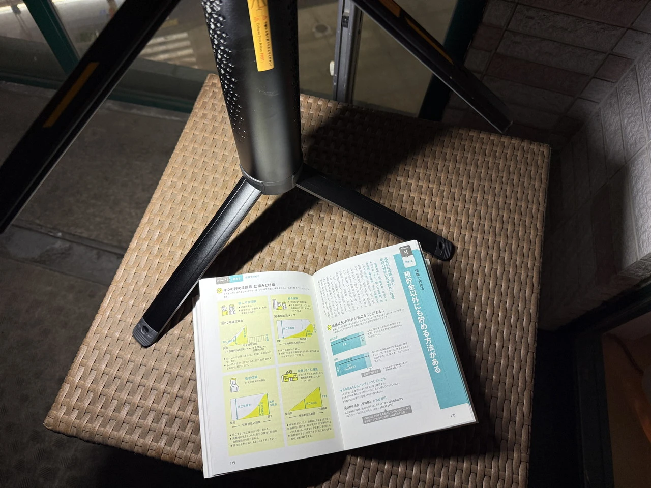 ライトパネルをすべて下に向けて高さを下げ、最小光量にしてデスク上に設置すれば、手元灯として読書にも役立ちます。