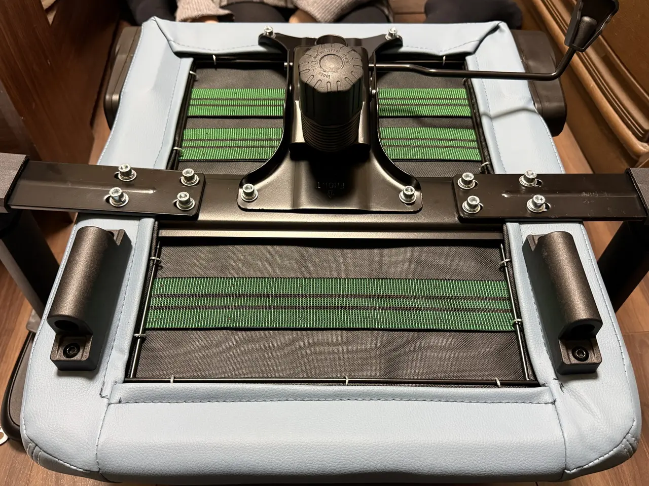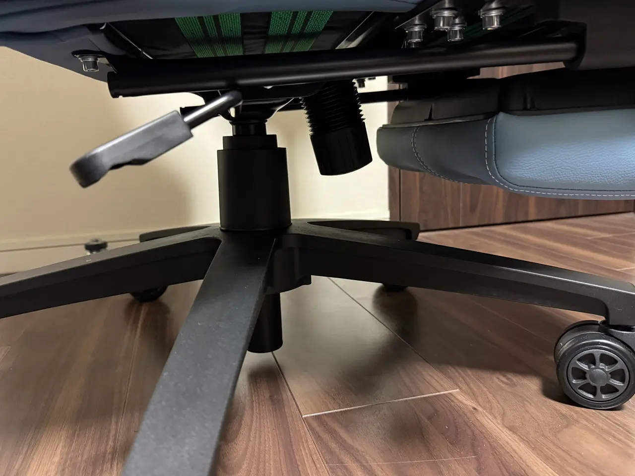 ただし、オットマンを座面下部に固定する筒部分にストッパー(弁)が設けられていないため、強く引き出すと簡単に抜けてしまう点には注意が必要です。個人的には、もう少し抜けにくくするための工夫が欲しかったと感じました。