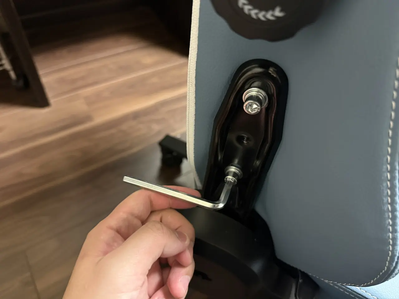 ▼特に背もたれを座面に取り付ける手順が1人では難しく、誰かに支えてもらう必要がありました。