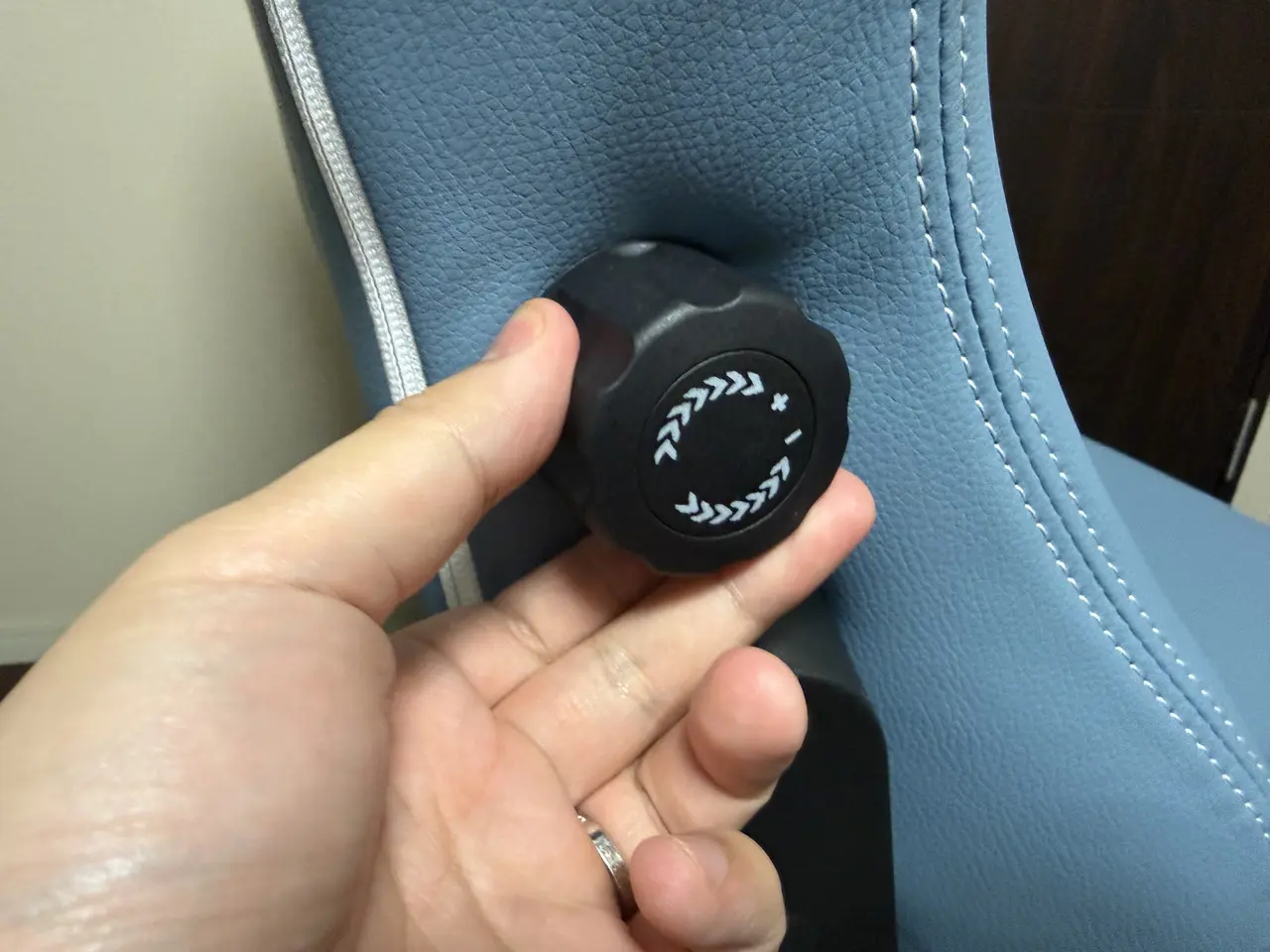 ▼背もたれ側面に備わっているダイヤルで調整可能